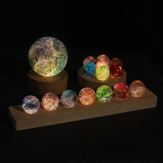 Crystal Glass Luminary Sphere Set with Wooden Base