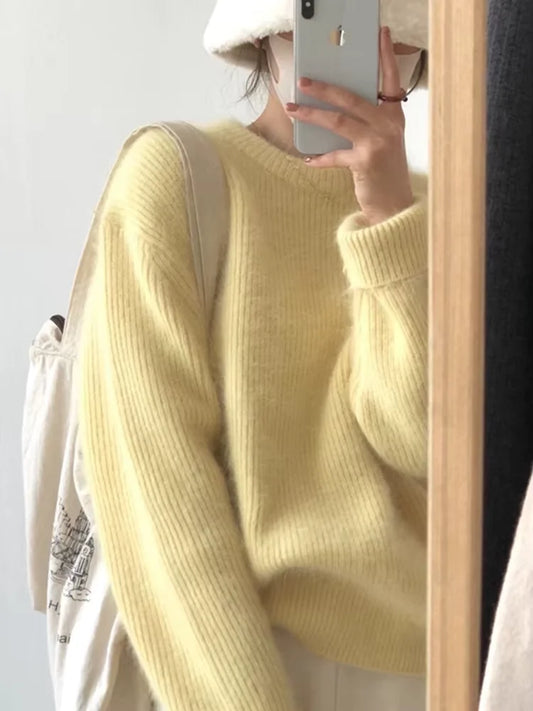 Faustine - gruby wełniany sweter z okrągłym dekoltem i kaszmirem