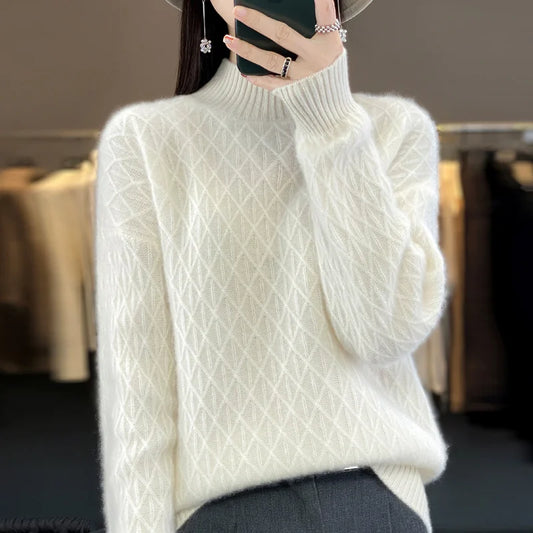 OSZCZĘDŹ 51%Salomi - Jednolity Kolor Wełniany Sweter