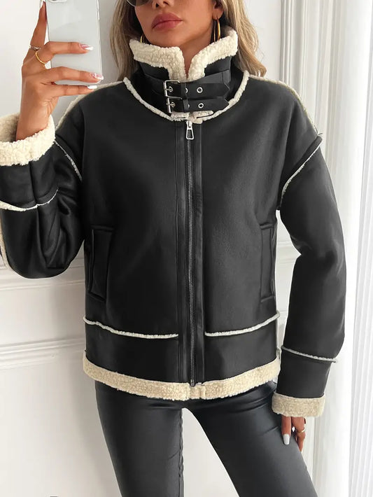 OSZCZĘDŹ 60%Elly - Przytulna skórzana kurtka futrzana