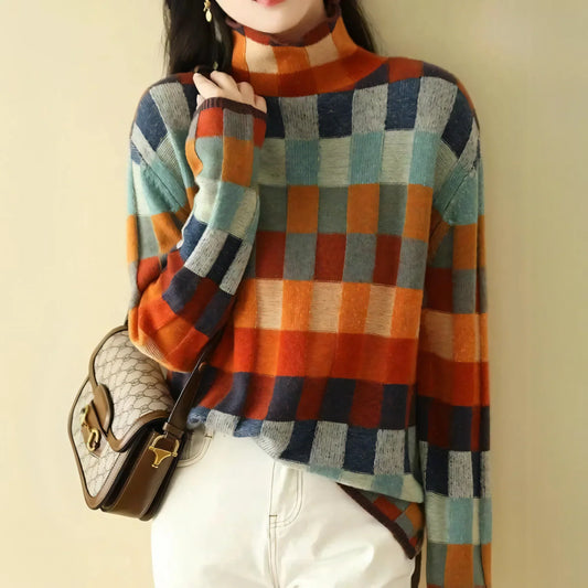 Ane – sweter zimowy w abstrakcyjnym stylu z blokami kolorów