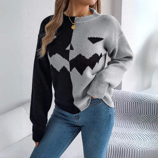 Arvid – Kontrastowy sweter typu pullover na Halloween dla kobiet