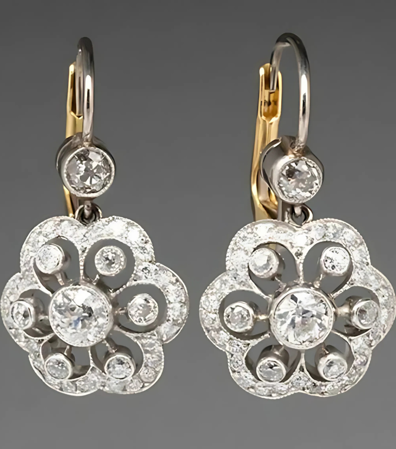 Aelys – Vintage kwiatowe kolczyki z diamentami