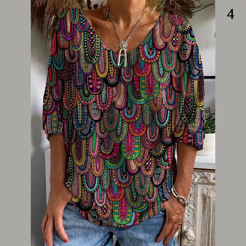 Assia Chic Abstract Print Casual T-Shirt to idealne połączenie nowoczesnego stylu i bezwysiłkowego komfortu. Ta lekka i przewiewna koszulka o odważnym i artystycznym abstrakcyjnym wzorze dodaje żywego akcentu do każdej stylizacji. Luźny krój i miękki materiał sprawiają, że idealnie nadaje się do noszenia przez cały dzień, niezależnie od tego, czy jest łączona z dżinsami, aby uzyskać swobodny wygląd, czy też ubrana w dodatki, aby uzyskać szykowny wygląd. Jej wszechstronny design zapewnia, że ​​pozostaniesz modna i wygodna, bez względu na okazję.