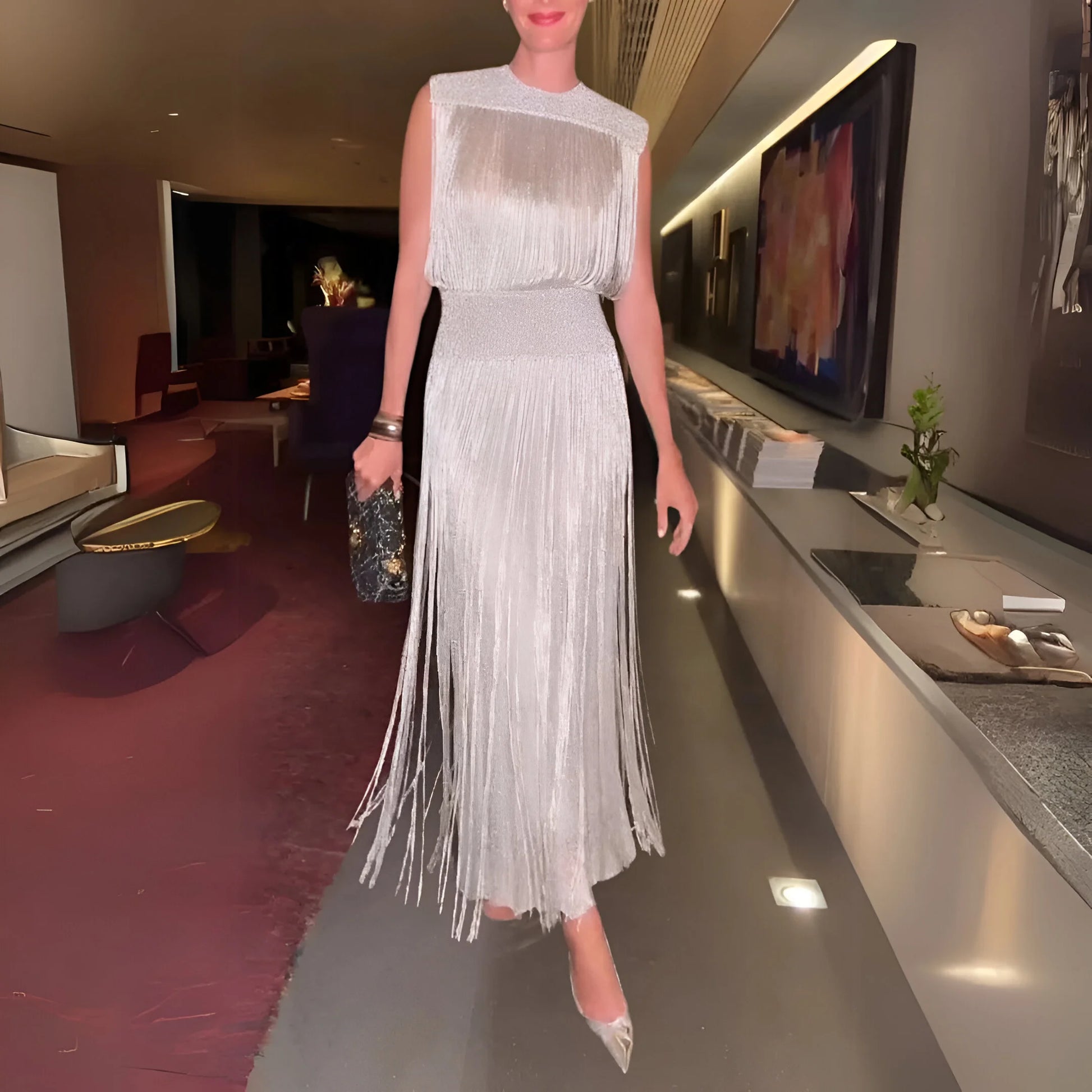Auriane została zaprojektowana, aby olśniewać, z dwuczęściową sylwetką, która porusza się jak płynne światło. Płynne detale i wyrafinowany krój sprawiają, że jest to wybór na eleganckie wieczory i niezapomniane wejścia.
