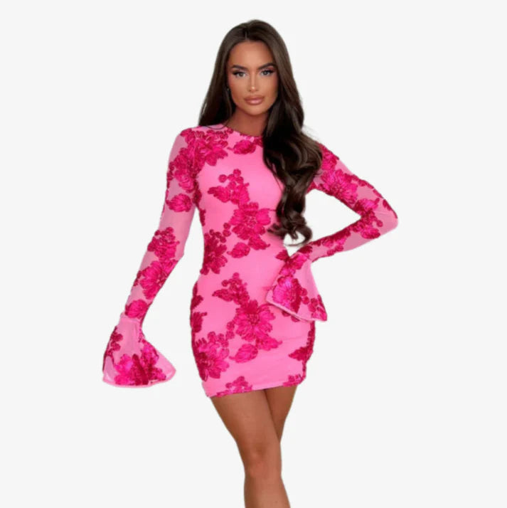 Przykuwaj wzrok w sukience Celeste , romantycznej perełce, która łączy elegancję z nowoczesnym charakterem. Wykonana z miękkiej, elastycznej tkaniny z delikatnymi haftowanymi kwiatami, ta dopasowana sylwetka w kolorze nieba podkreśla każdą krzywiznę z wdziękiem.