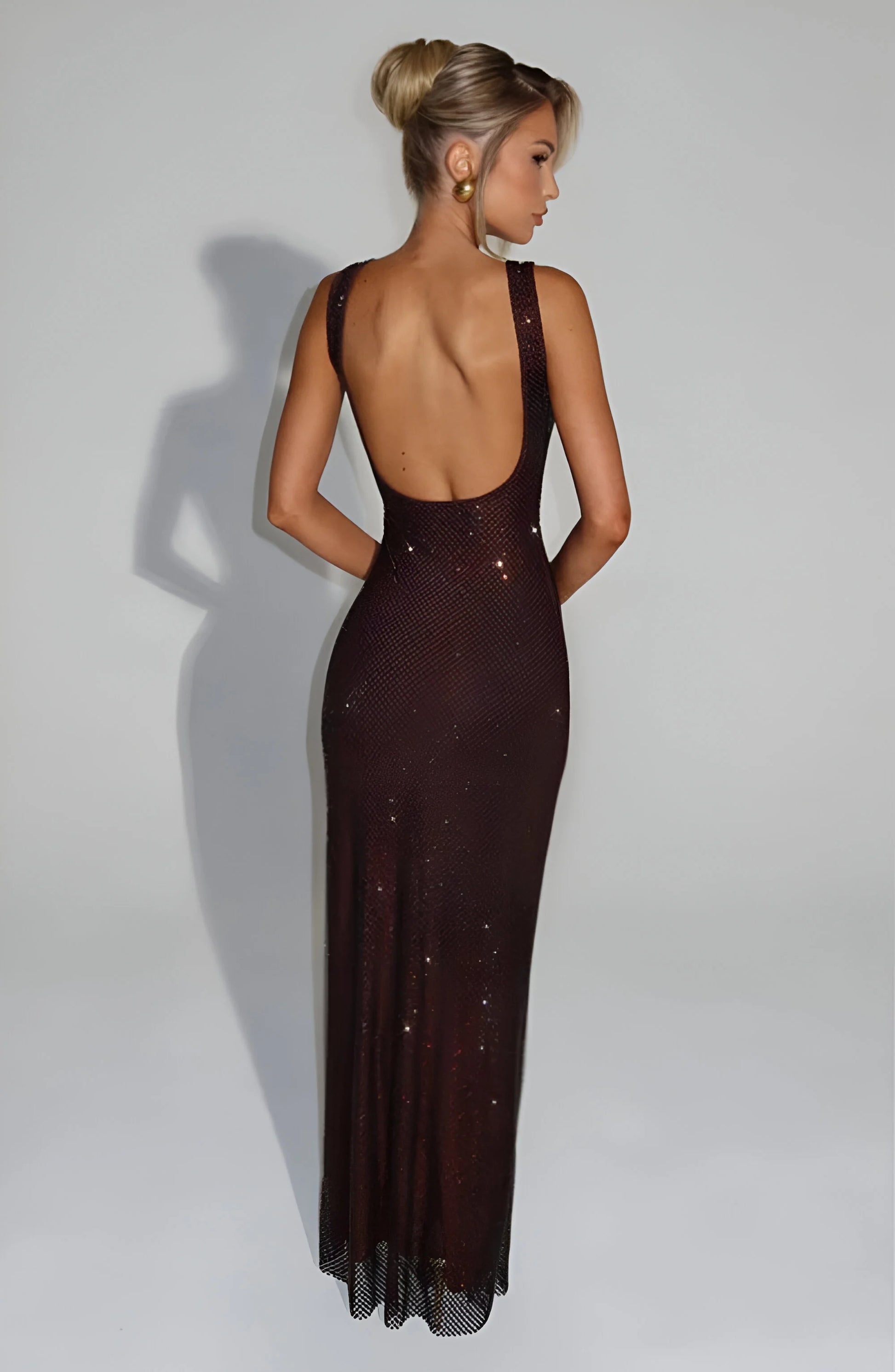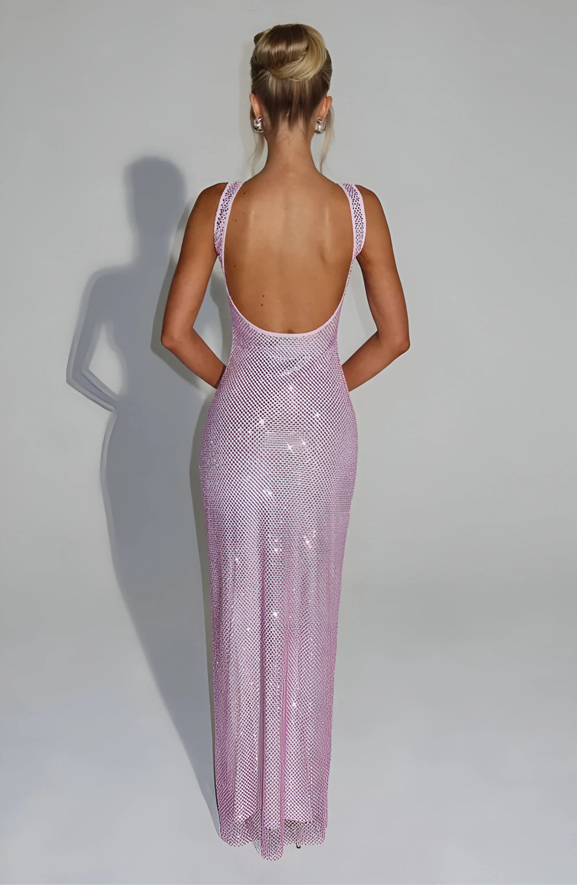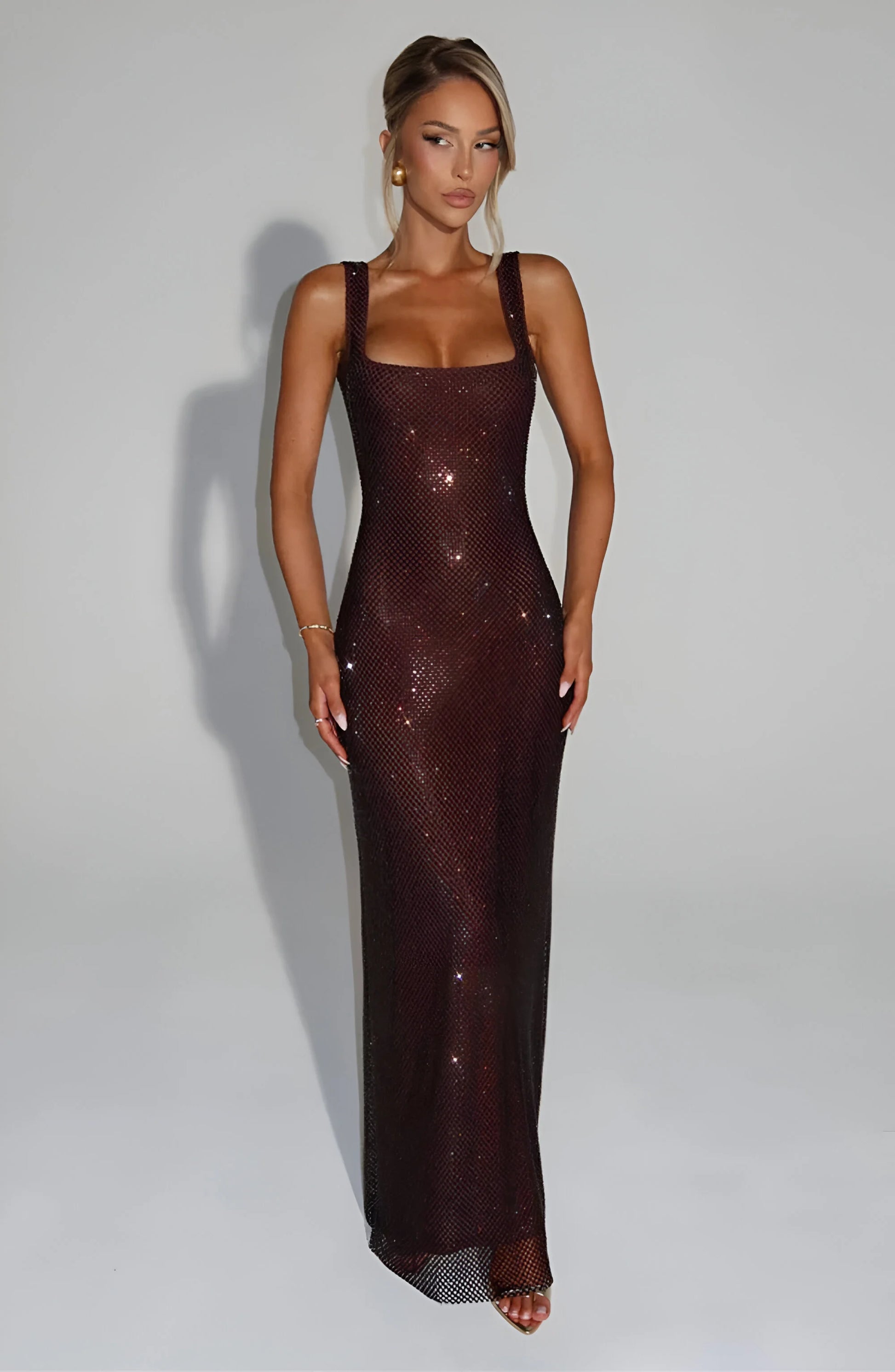 Przyciągaj wzrok w tej olśniewającej, siateczkowej sukience maxi, zaprojektowanej tak, abyś błyszczała pod każdym kątem. Jej dopasowana sylwetka i promienny połysk sprawiają, że jest to idealny, przyciągający wzrok wygląd.