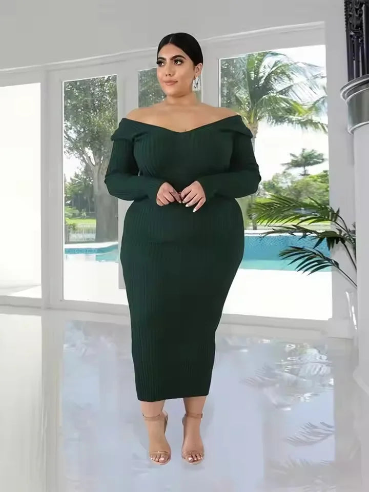 Ta oszałamiająca prążkowana sukienka midi sweterkowa ma odkryte ramiona, dzięki czemu idealnie nadaje się zarówno na okazje codzienne, jak i eleganckie. Jej dopasowany krój i długie rękawy dodają odrobinę ciepła, a jednocześnie zapewniają stylowy wygląd przez cały sezon.