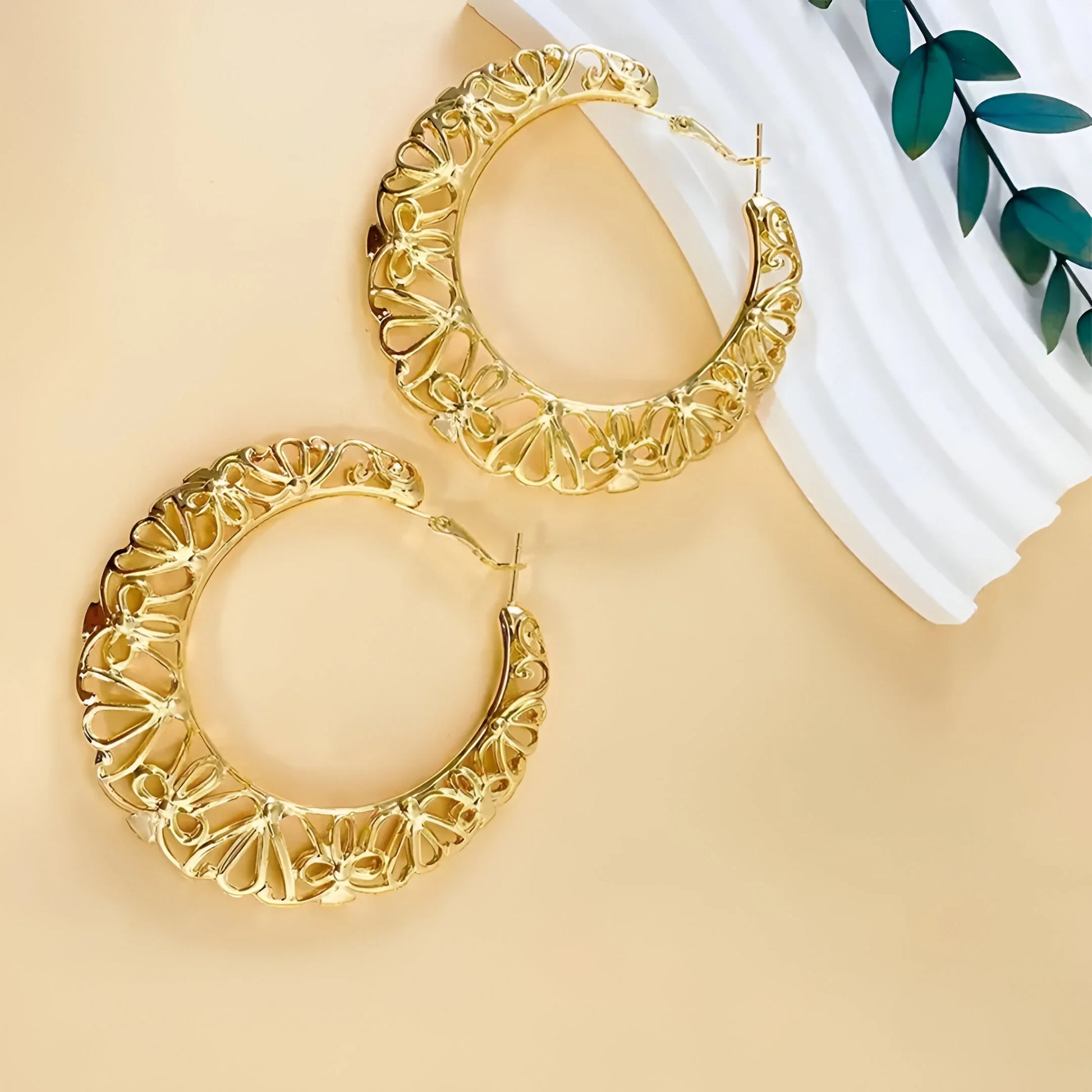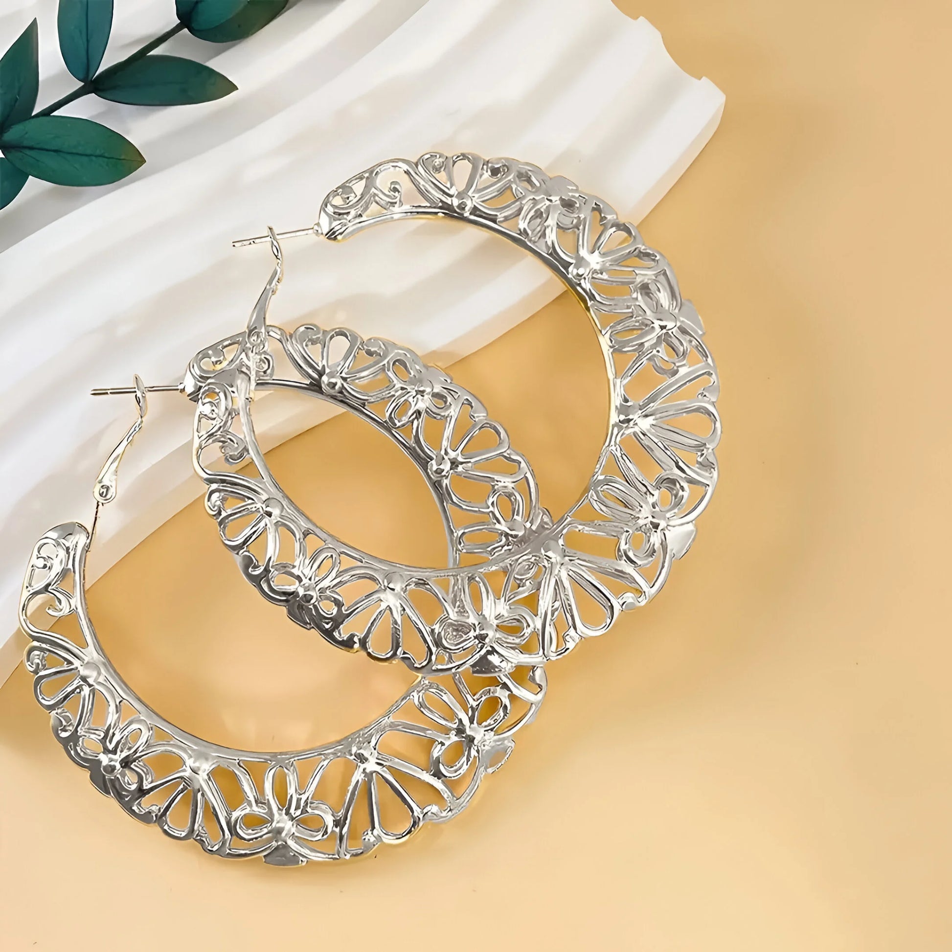 Wnieś ponadczasową elegancję do swojego wyglądu dzięki tym kolczykom w kształcie kółek w stylu vintage z rzeźbionymi kwiatami, dostępnym w wykończeniu złotym i srebrnym. Idealne do dodania wdzięcznego, artystycznego akcentu do każdego stroju.