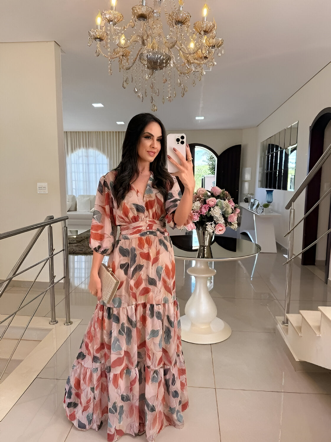 CLAUDIA | Sukienka maxi z kwiatowym wzorem i wygodnym krojem na eleganckie dni