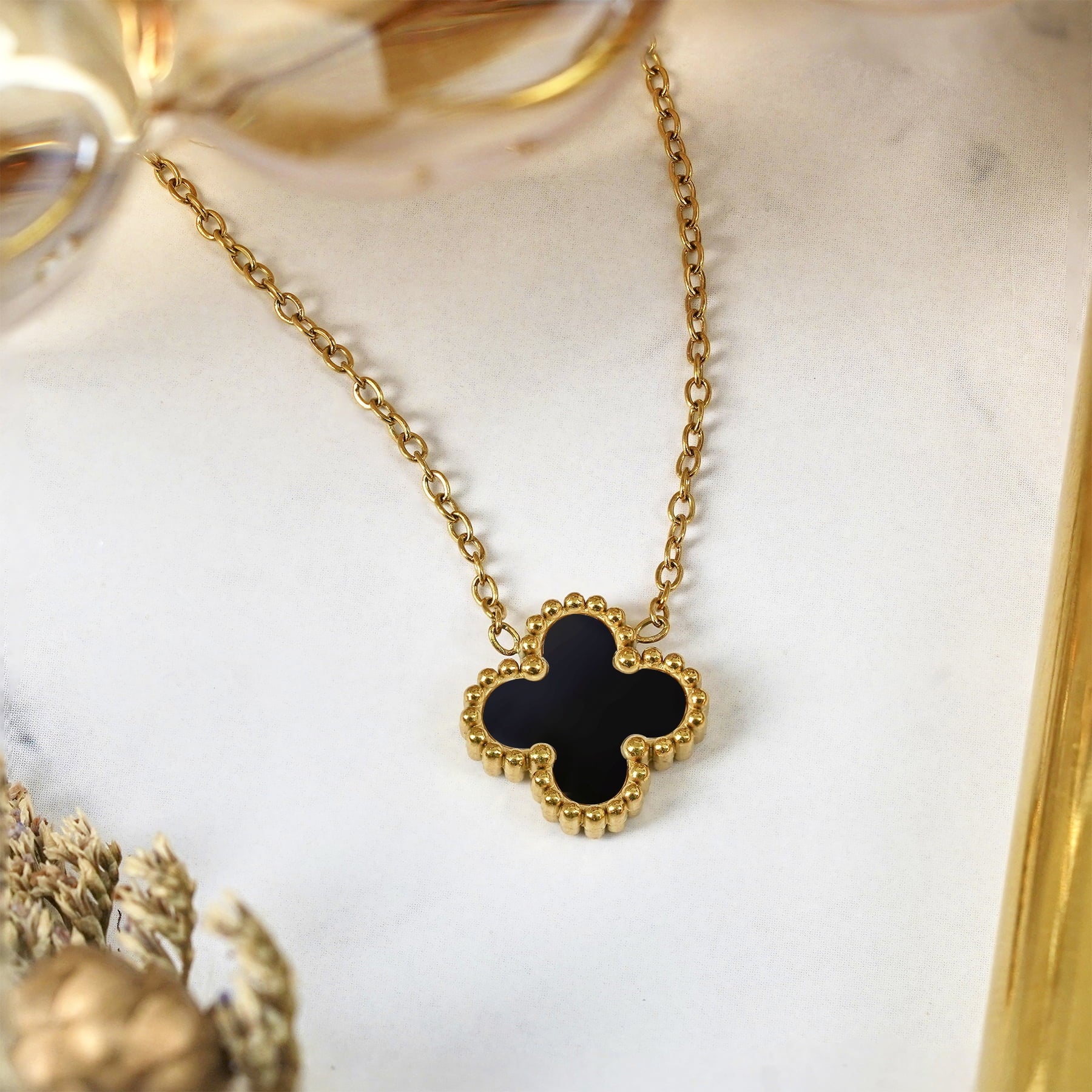 Naszyjnik koniczyna ze złotym łańcuszkiem