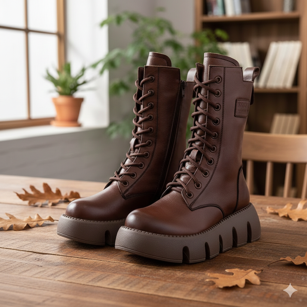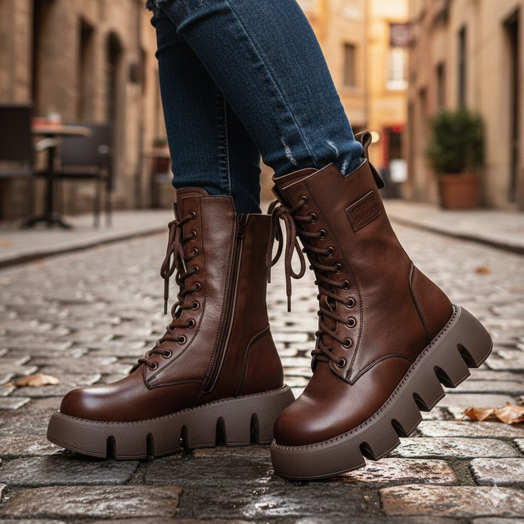 Damskie botki z grubą podeszwą i bocznym zamkiem samochodowym