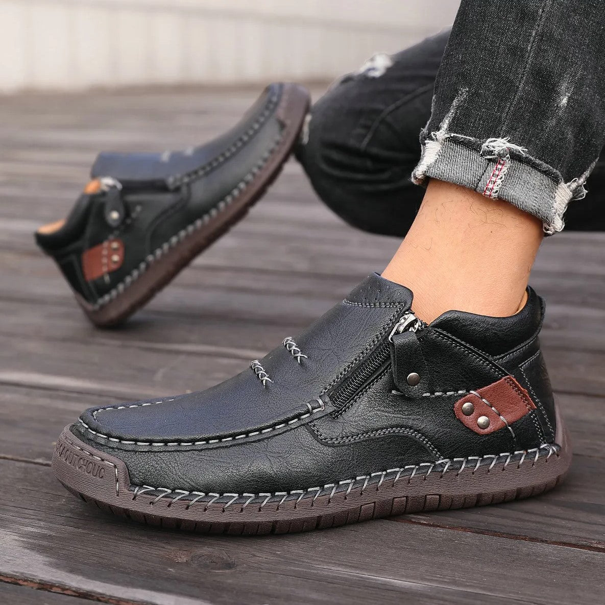Starannie szyte ręcznie z wysokogatunkowej skóry, zapewniają wyjątkową trwałość, bogatą fakturę i ponadczasowe rzemiosło. Boczne zapięcie na suwak oraz regulowany pasek umożliwiają szybkie zakładanie i zdejmowanie, gwarantując jednocześnie pewne i wygodne dopasowanie przez cały dzień.