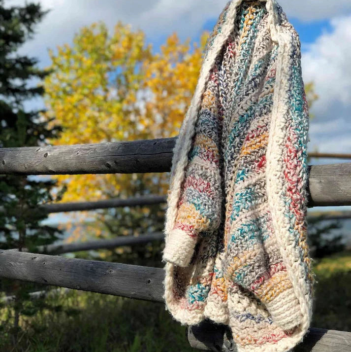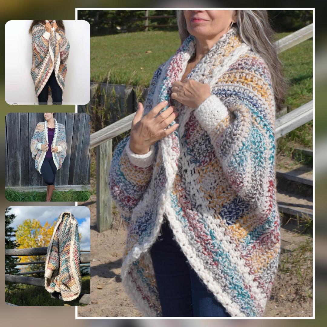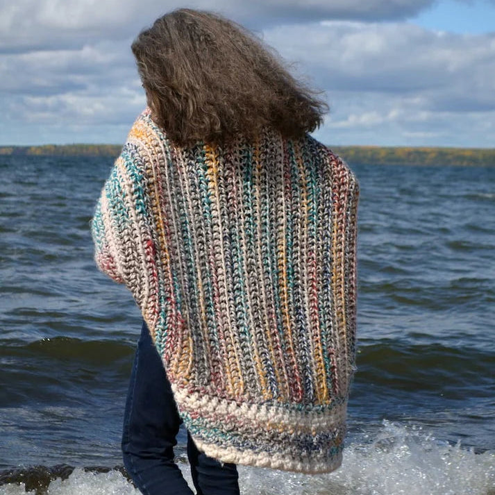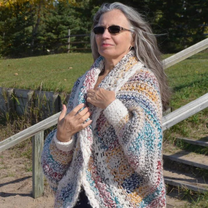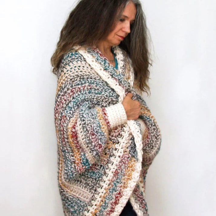 Otul się komfortem na weekend dzięki narzutce Luxe Oversized — przytulnej,rozmiar-elastycznykardigan, który można zrobić na szydełkuw ciągu kilku dni.