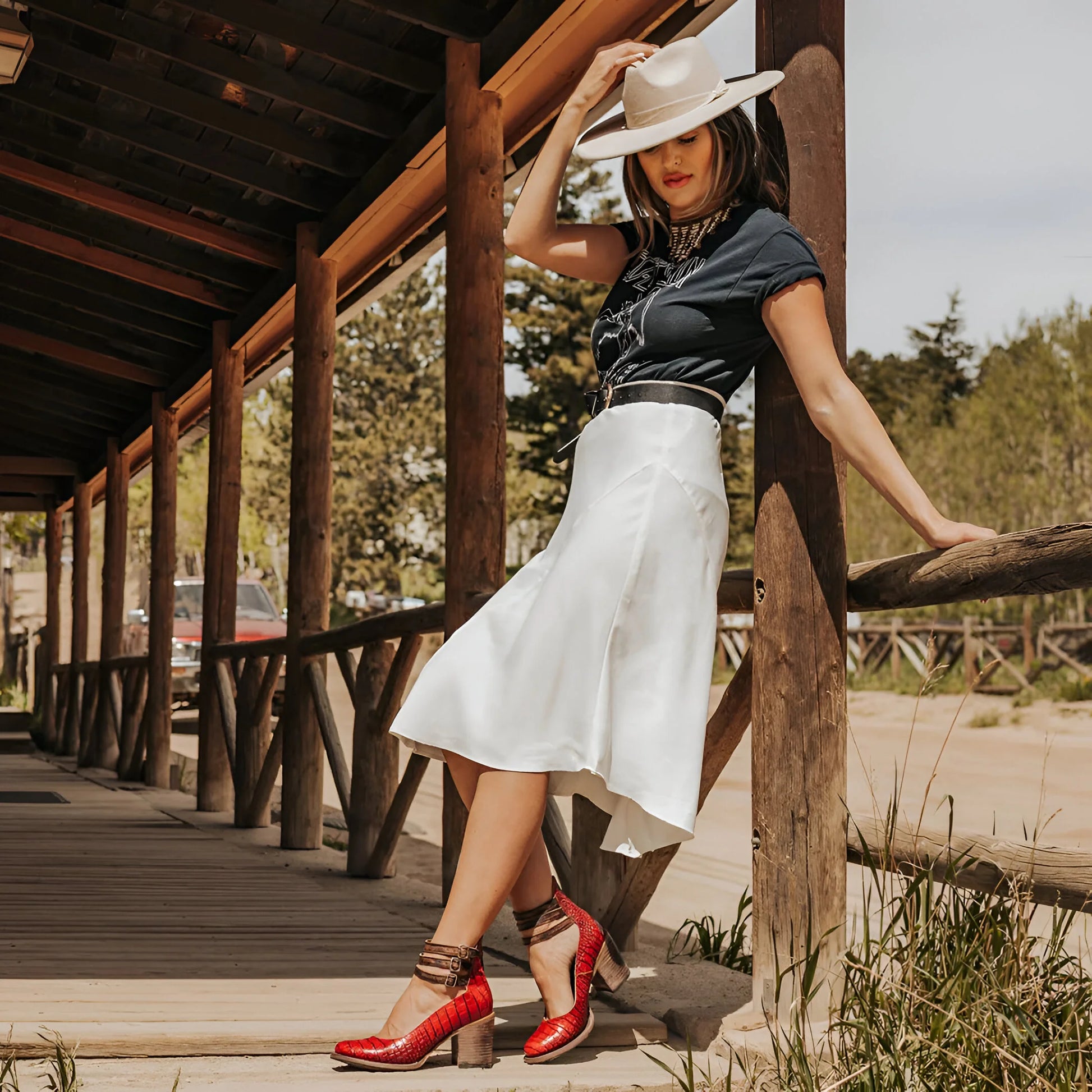 Stań pewnie z Liesl , gdzie rustykalny urok spotyka się z wyrafinowaną elegancją. Te ręcznie robione obcasy typu block heels są stworzone do noszenia przez cały dzień, łącząc wygodę, charakter i ponadczasowy styl na każdym kroku.