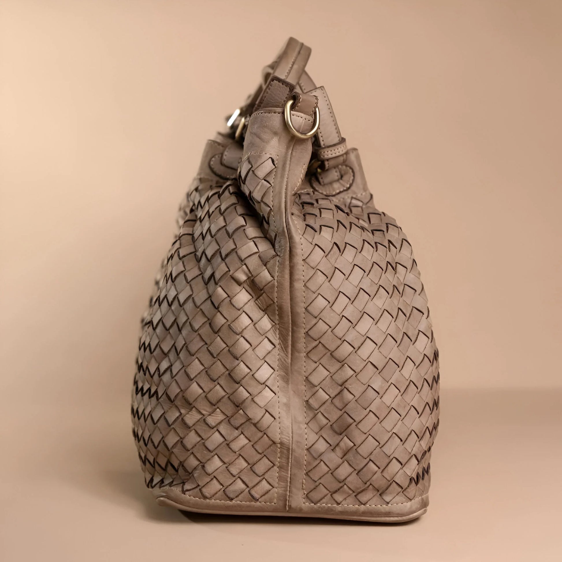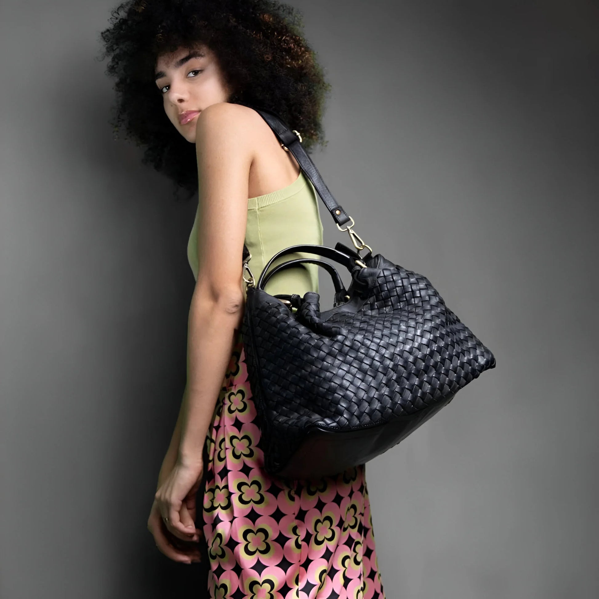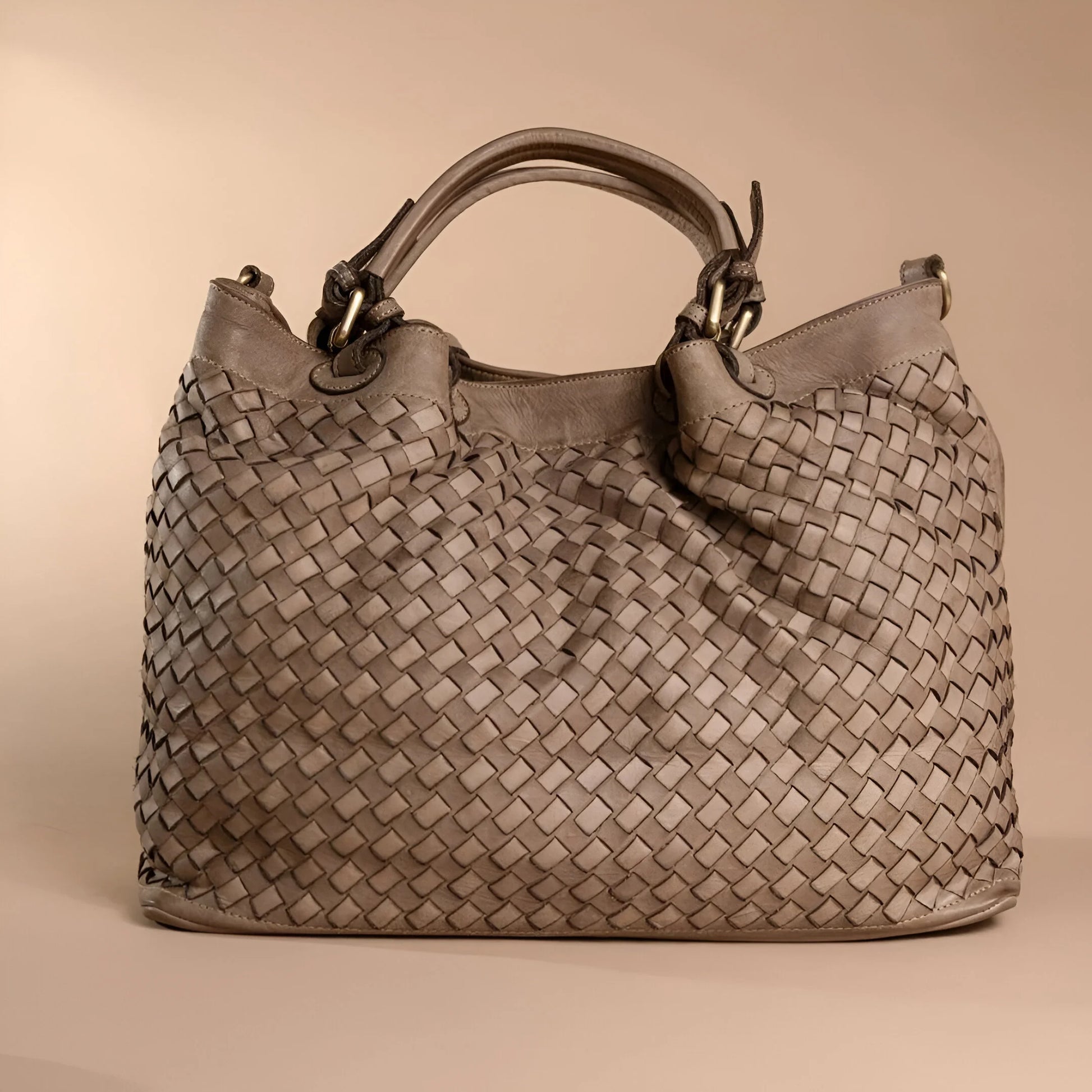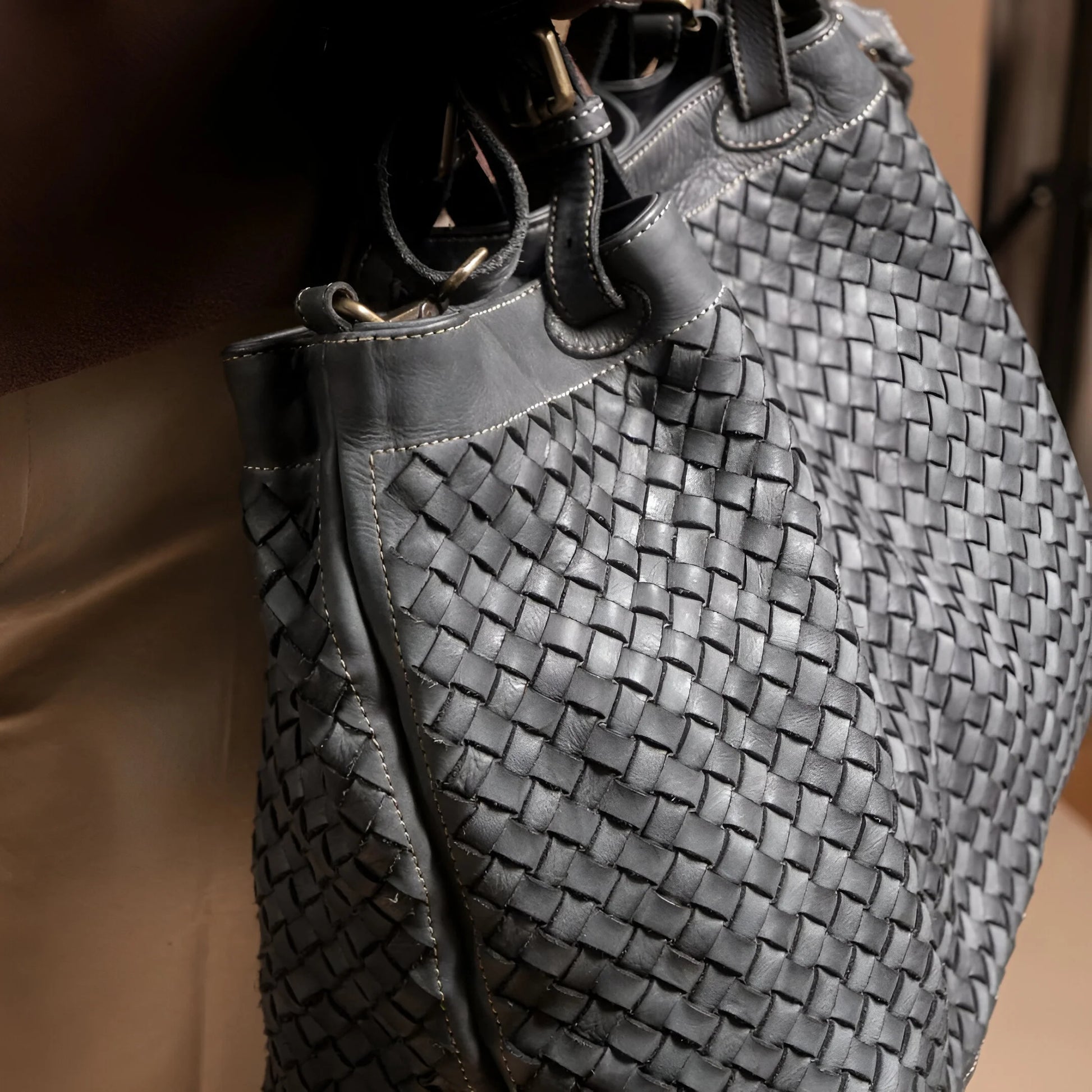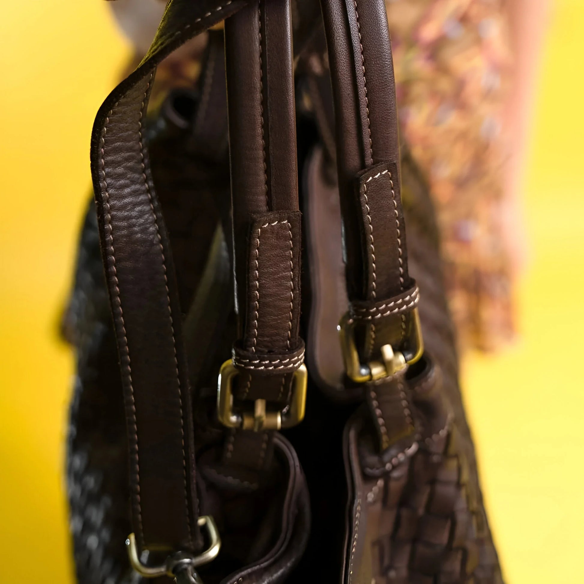 Wykonana z rzemieślniczym detalem, ta pleciona skórzana torba na ramię oferuje zarówno elegancję, jak i praktyczność. Jej przestronne wnętrze i strukturalna sylwetka sprawiają, że jest to wyrafinowany wybór na co dzień lub na weekendowe wyjścia.