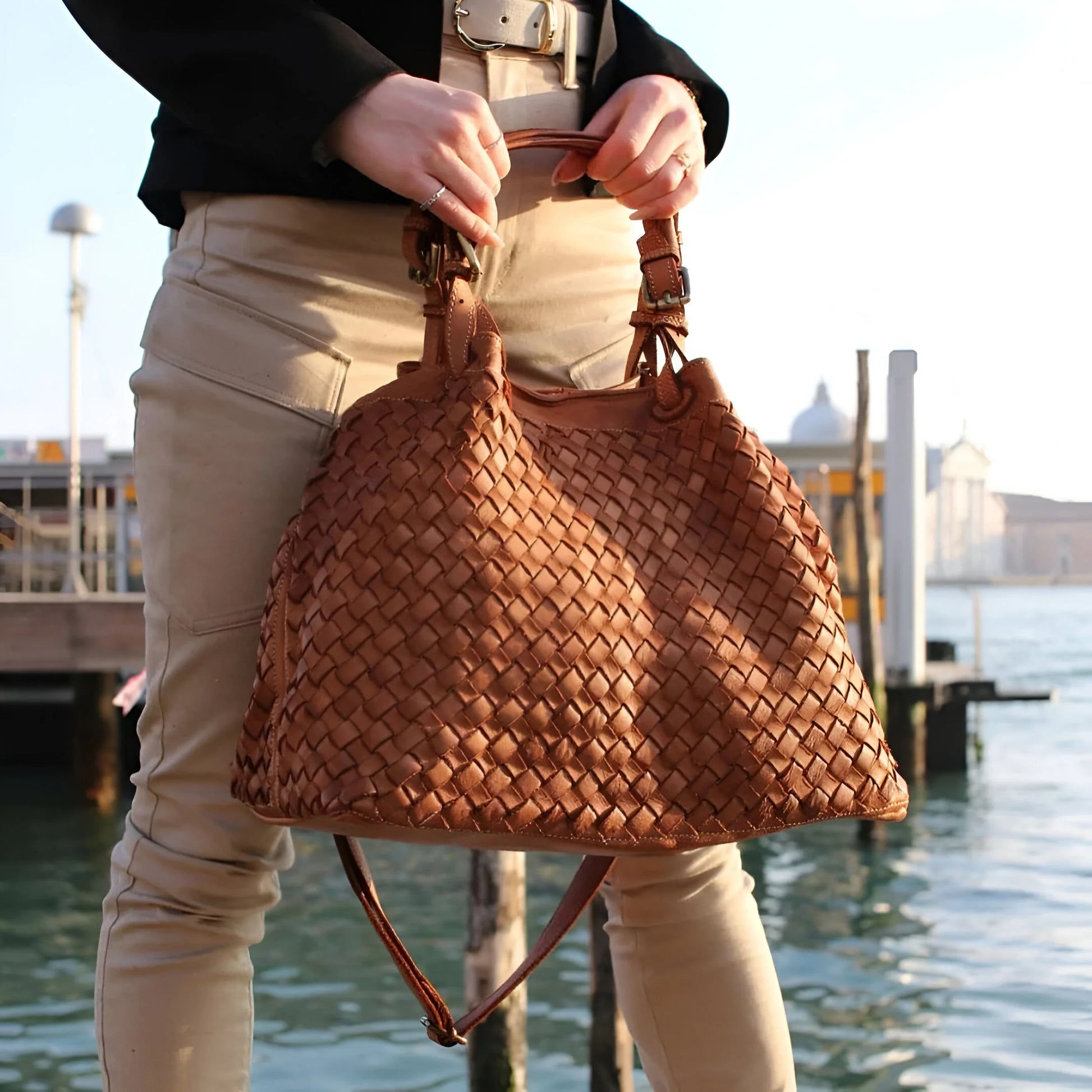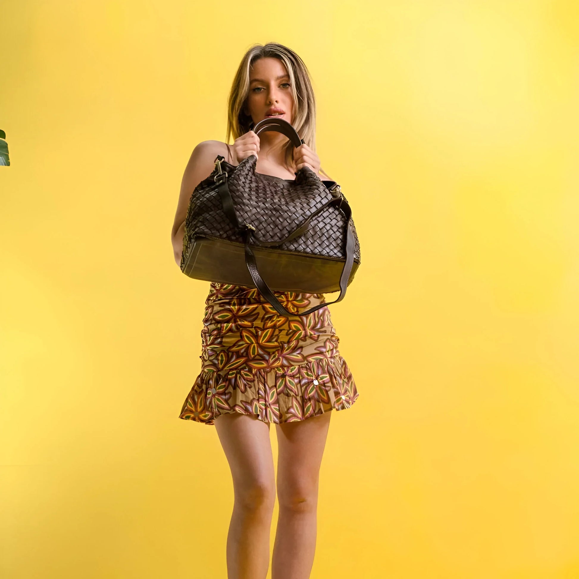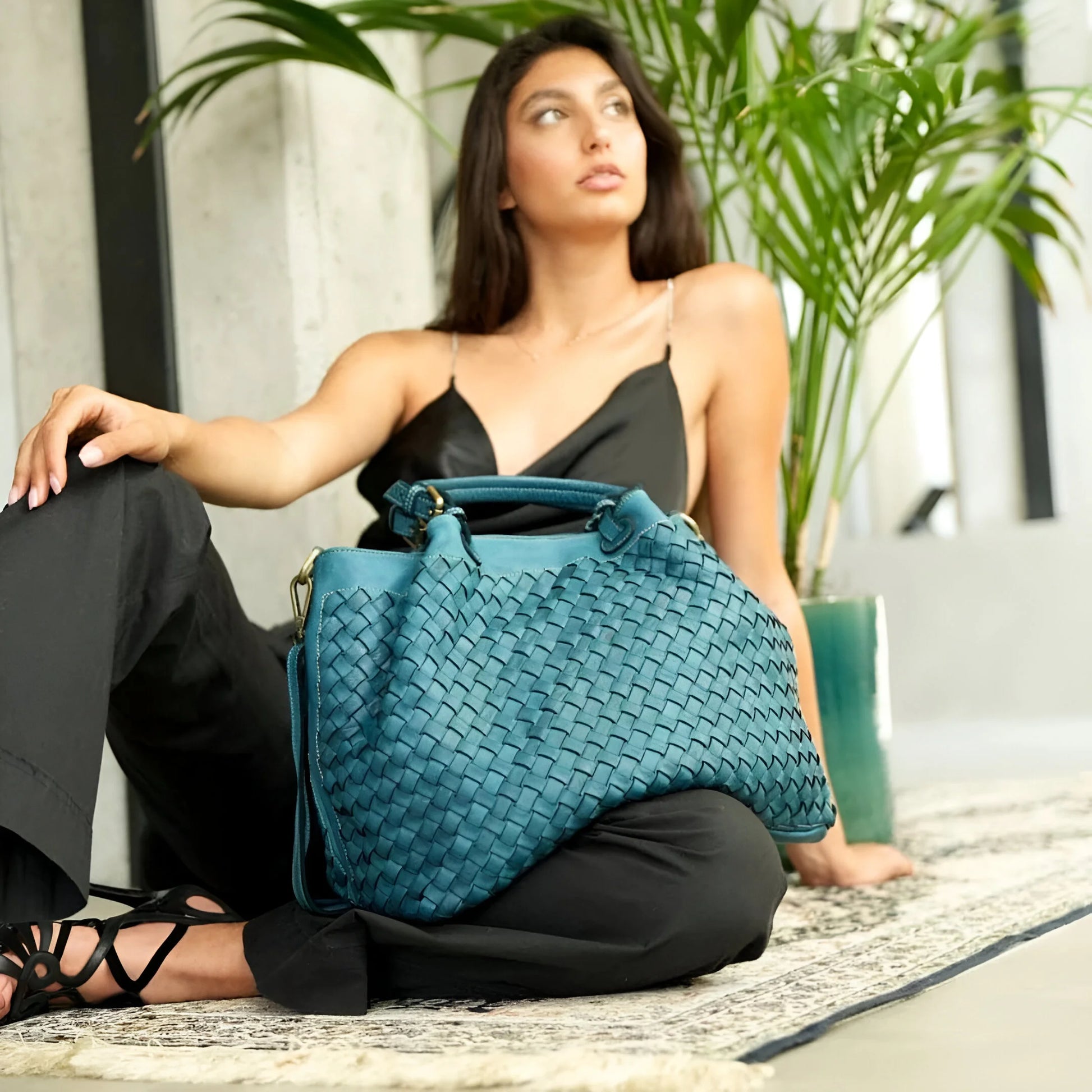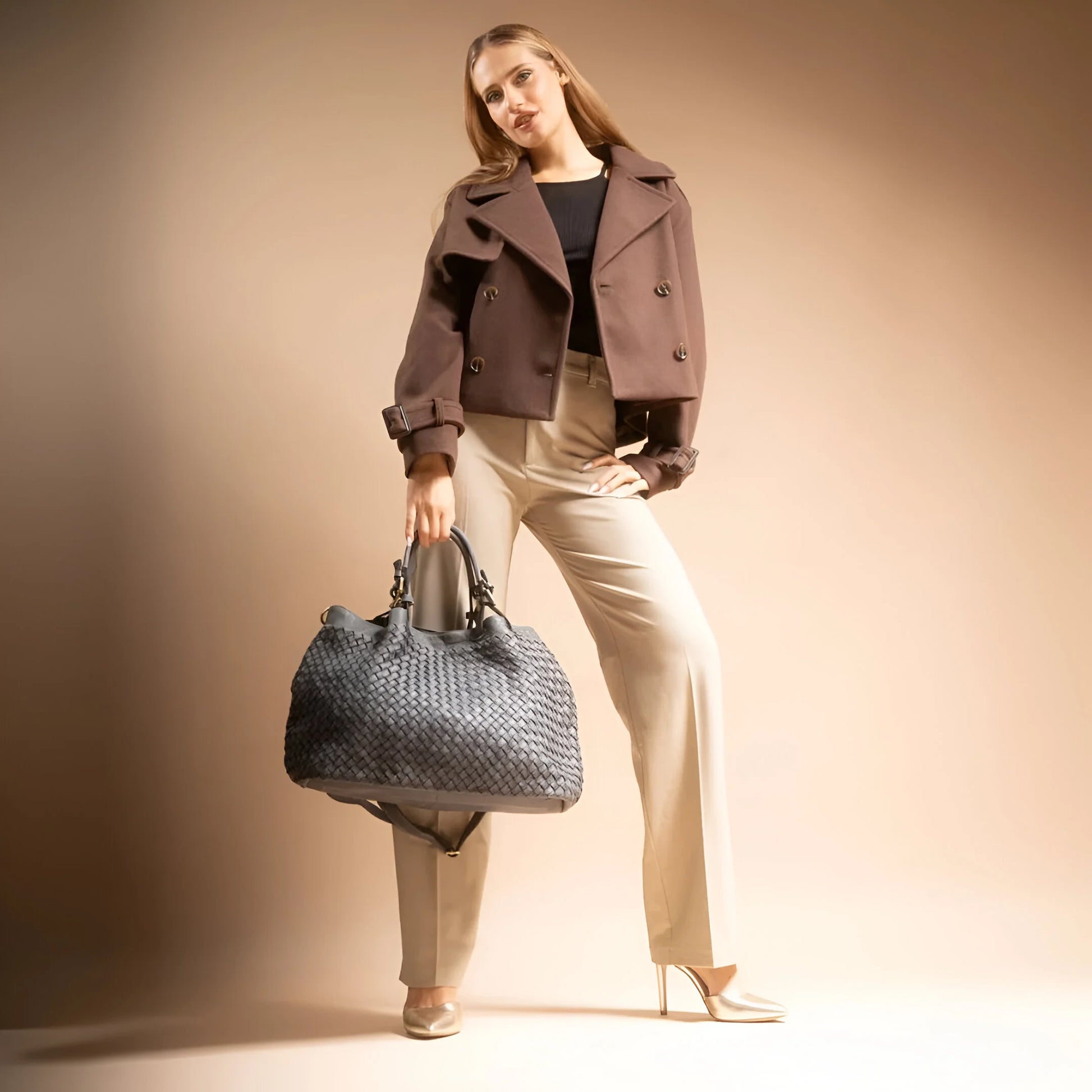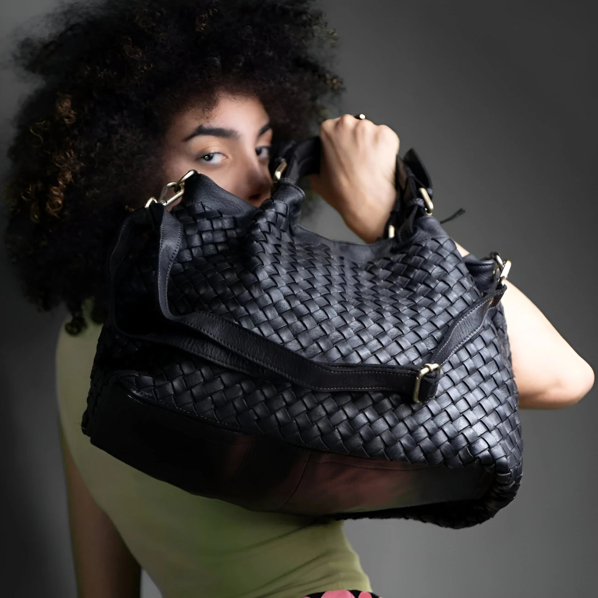 Wykonana z rzemieślniczym detalem, ta pleciona skórzana torba na ramię oferuje zarówno elegancję, jak i praktyczność. Jej przestronne wnętrze i strukturalna sylwetka sprawiają, że jest to wyrafinowany wybór na co dzień lub na weekendowe wyjścia.