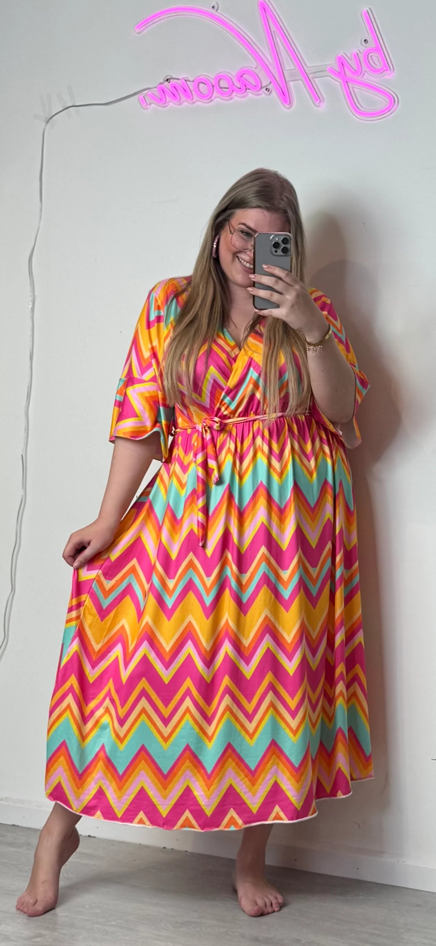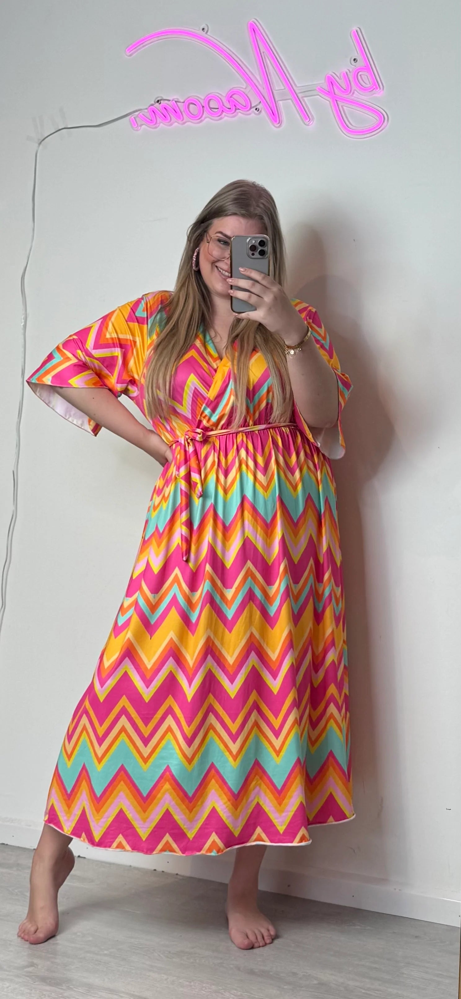 Sukienka ma ładny dekolt w serek, który można regulować, elastyczną talię z paskiem i jest bardzo miękka w materiale, ponieważ jest wykonana z mieszanki wiskozy i poliestru!