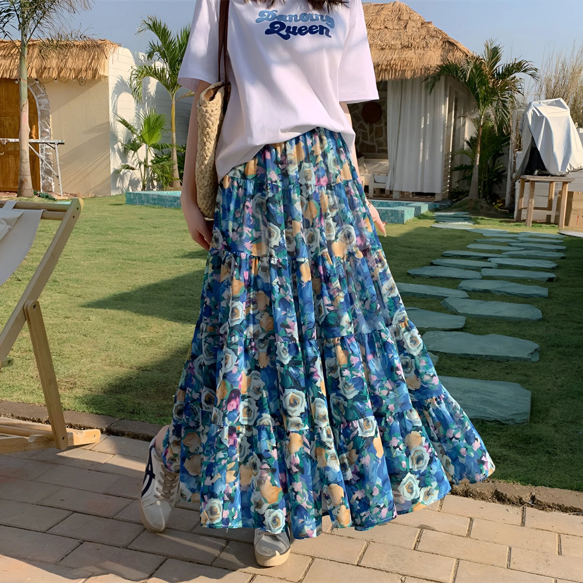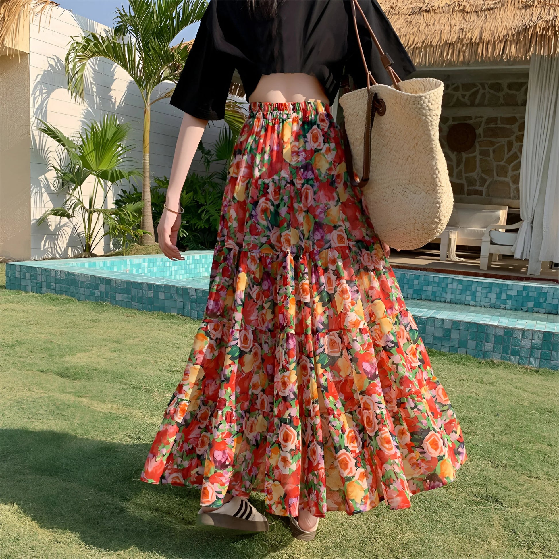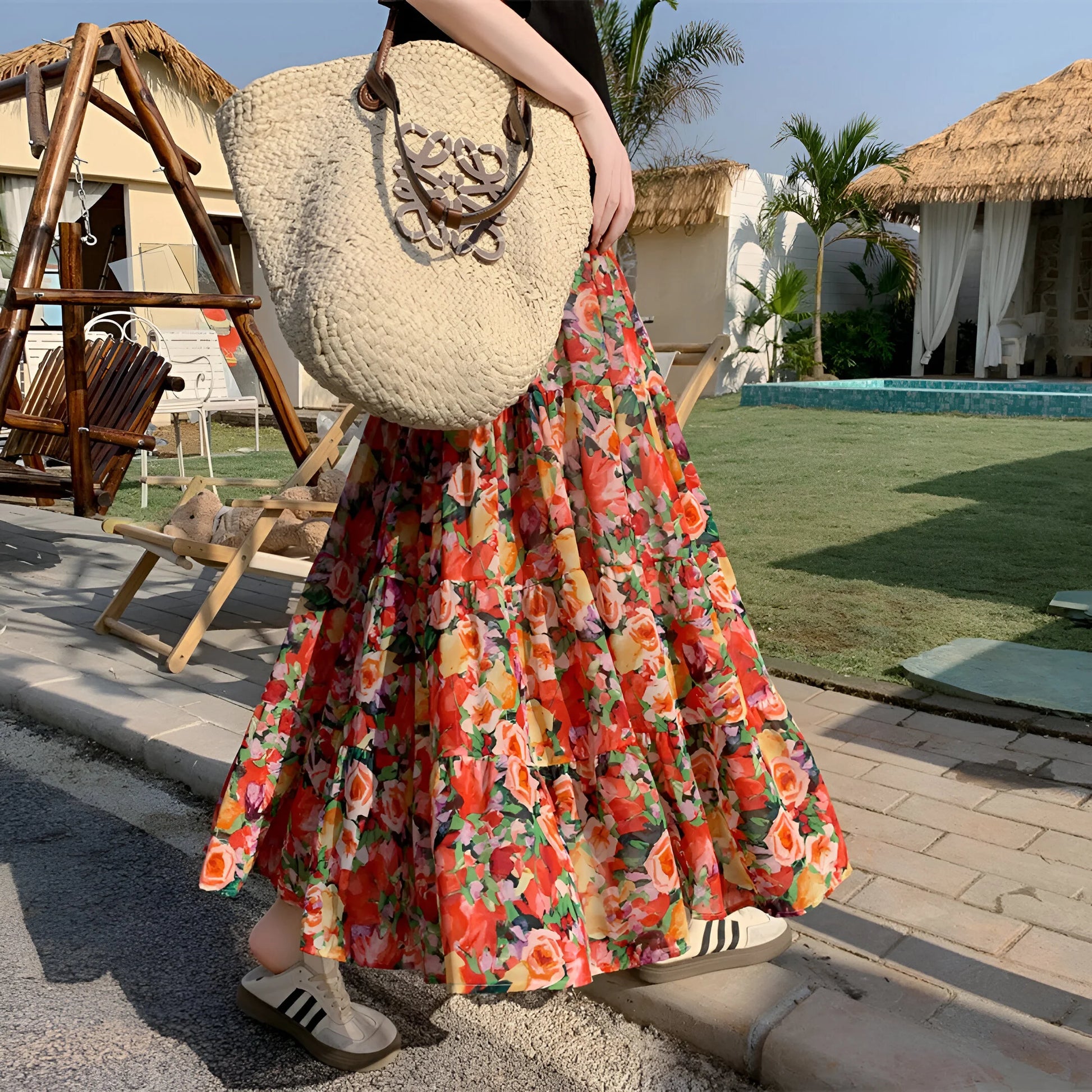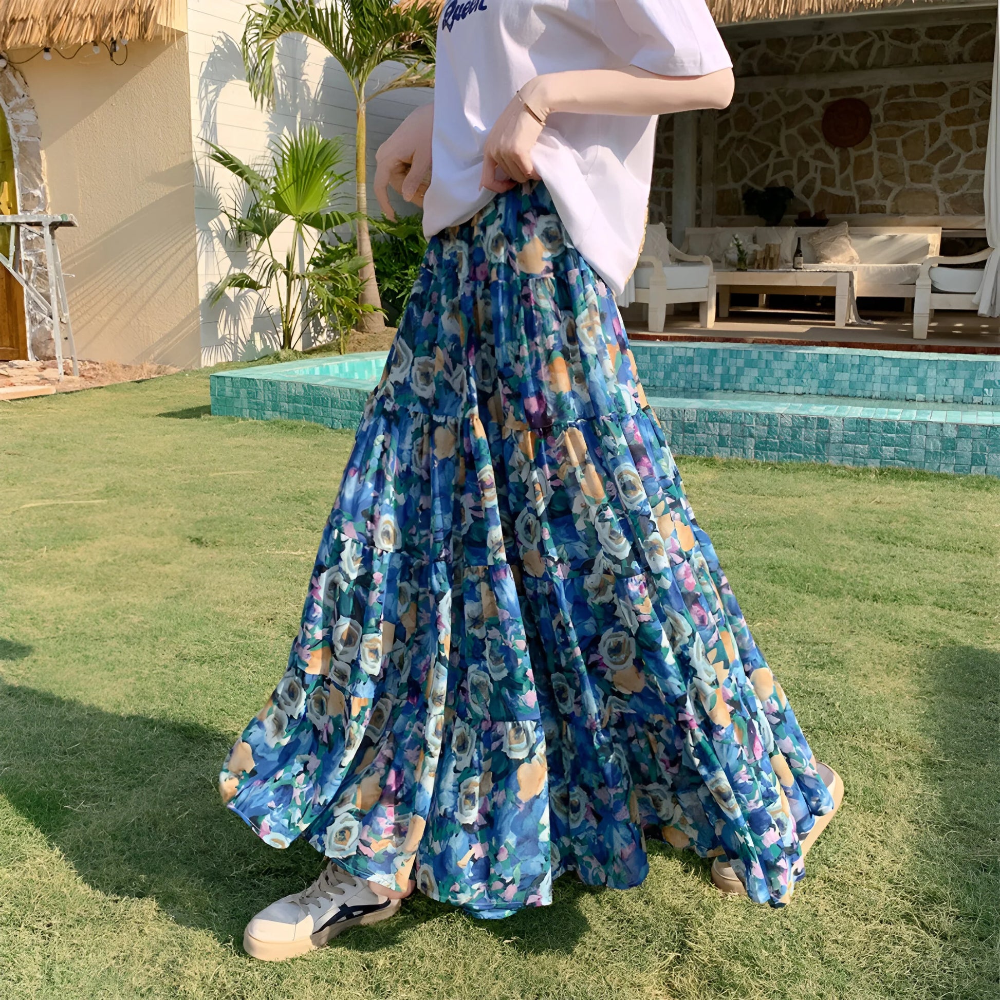 Daj się porwać wolnemu duchowi lata z naszą Elegancką Kwiecistą Spódnicą Boho, żywym hołdem dla kobiecości i wygody. Wykonana z płynnej, lekkiej tkaniny, tańczy z każdym Twoim krokiem i podkreśla każdą sylwetkę.