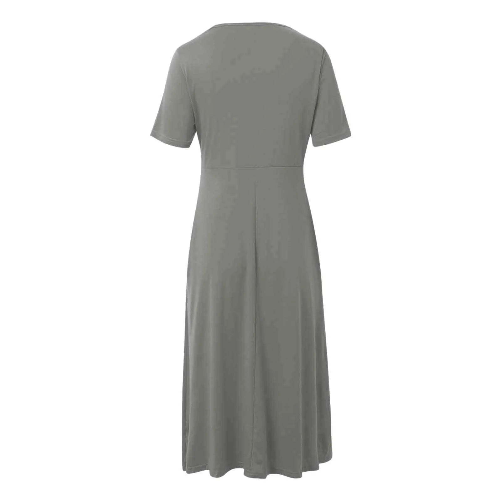 Sukienka Meline Feminine Flair Maxi to idealne połączenie stylu i wygody, zaprojektowane tak, abyś czuła się szykownie i bez wysiłku. Ta sukienka z pięknie wykonanym gorsetem typu cross-wrap, który podkreśla Twoją sylwetkę, oferuje pochlebne dopasowanie na każdą okazję. Miękka, zwiewna tkanina układa się wdzięcznie, tworząc ponadczasowy i wyrafinowany wygląd. Dzięki praktycznym kieszeniom bocznym ta sukienka łączy modę z funkcjonalnością, dzięki czemu idealnie nadaje się na niezobowiązujące wyjścia, wieczorne spotkania lub wakacyjne spacery. Krótkie rękawy i elegancki dekolt w serek dodają odrobinę kobiecości, zapewniając, że wyróżnisz się pewnością siebie i wdziękiem.