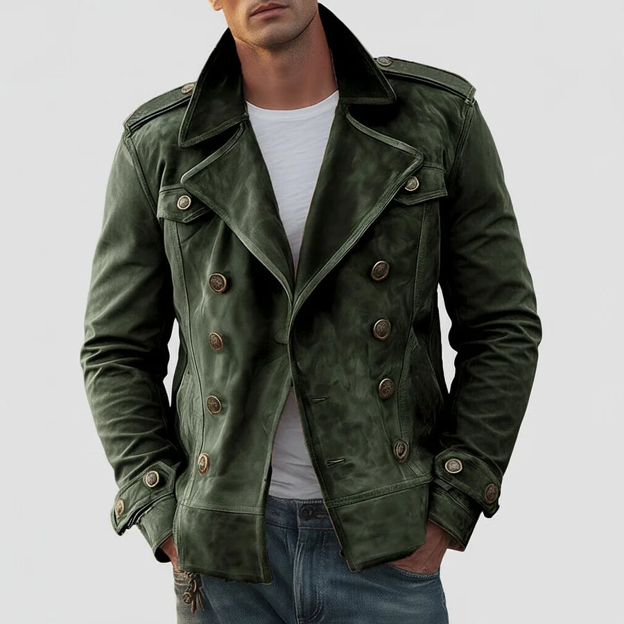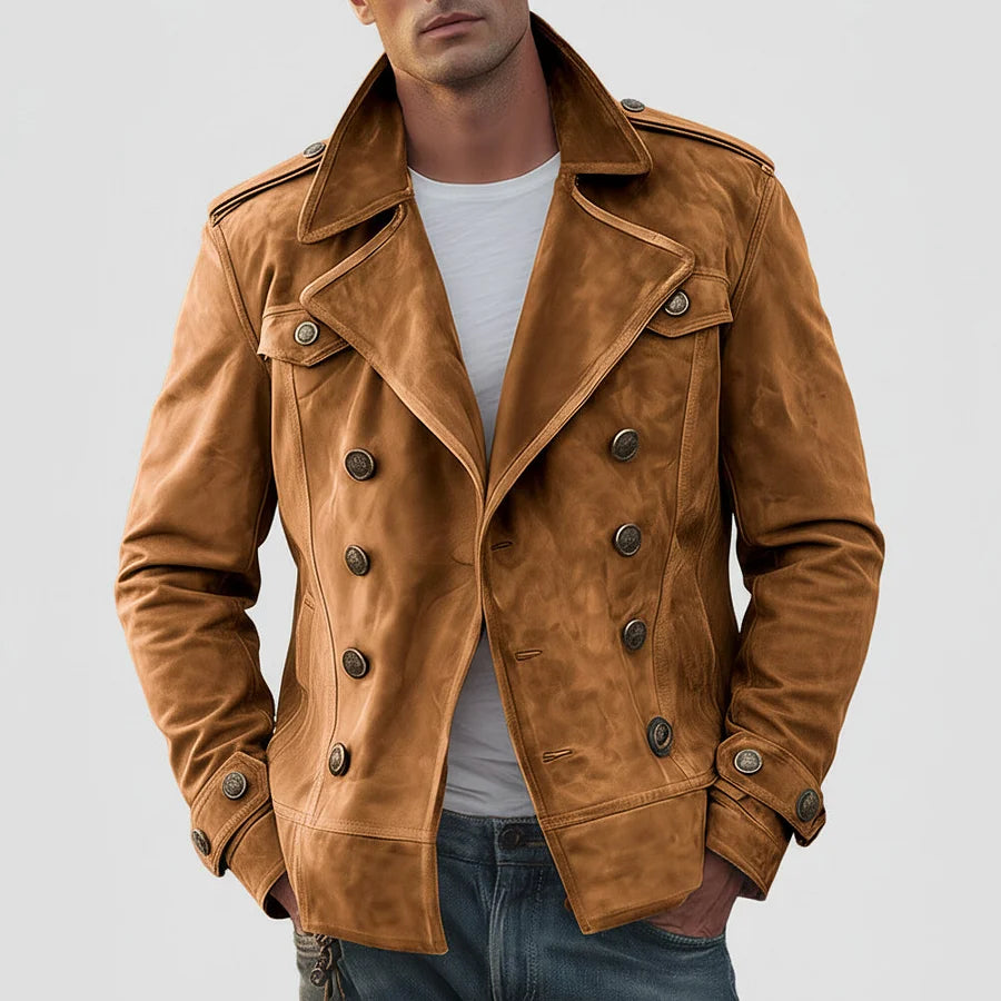 Męska dwurzędowa kurtka zamszowa z kołnierzem z klapami