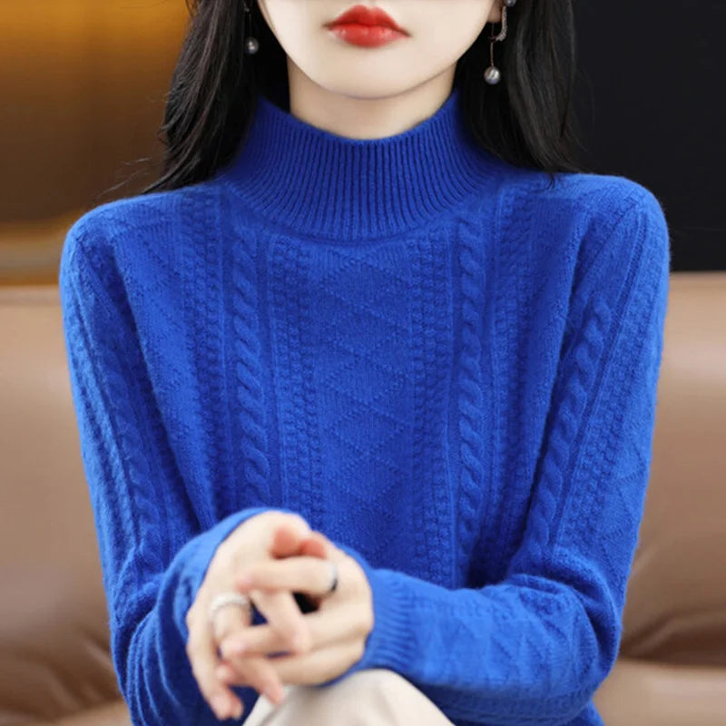 Ten gruby, luźny sweter kaszmirowy jest idealny na zimę dzięki półwysokiemu kołnierzowi i przytulnej, dzianinowej fakturze. Miękka tkanina kaszmirowa zapewnia ciepło i wygodę, a luźny krój oferuje zarówno styl, jak i wygodę. To niezbędny element zimowej garderoby.