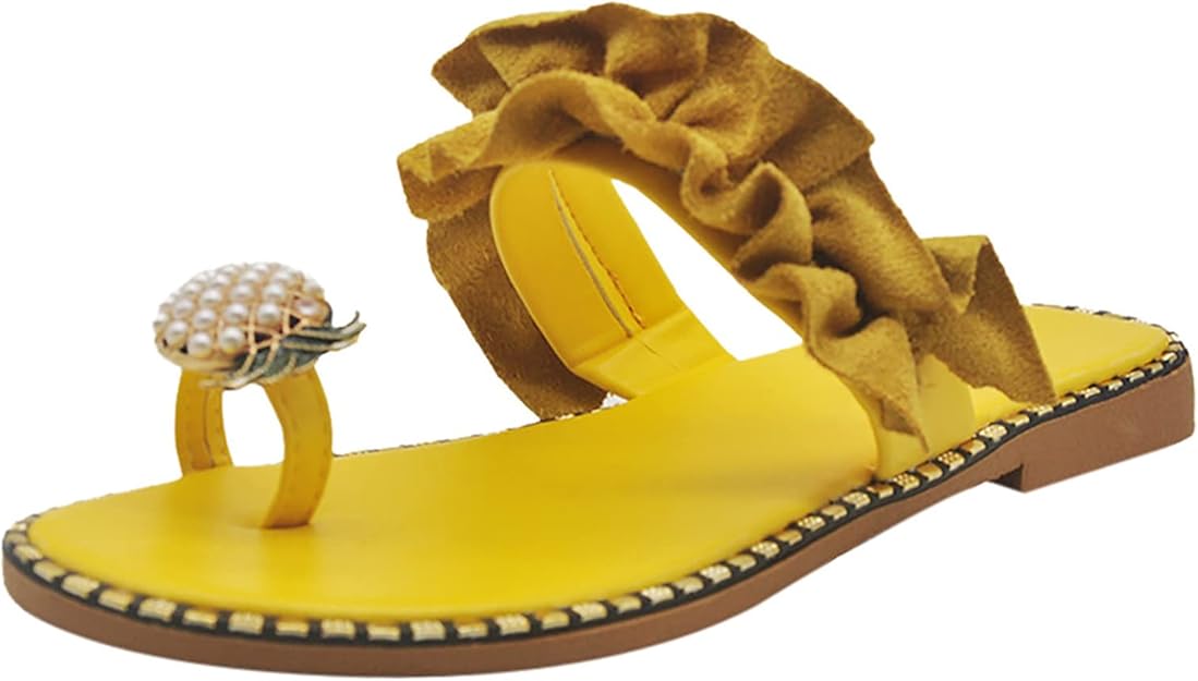 Raj ananasa: Rozkoszuj się tropikalnym urokiem tych boho sandałów ozdobionych wykwintnymi perłami ananasowymi, które odzwierciedlają istotę słonecznego wypoczynku na plaży