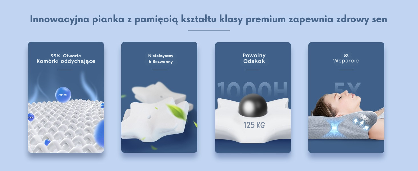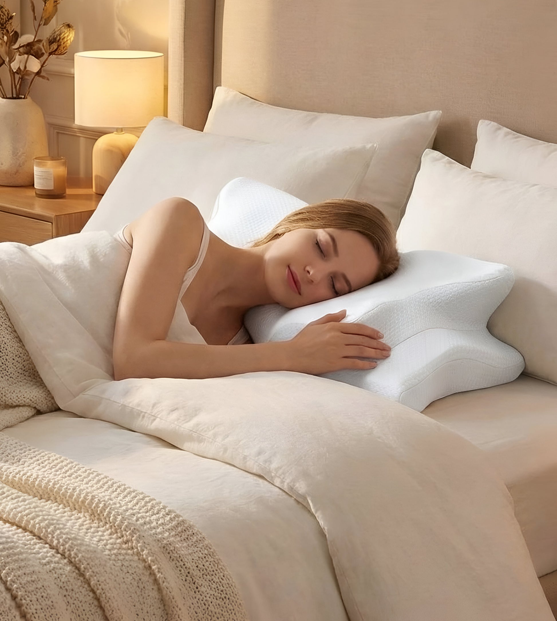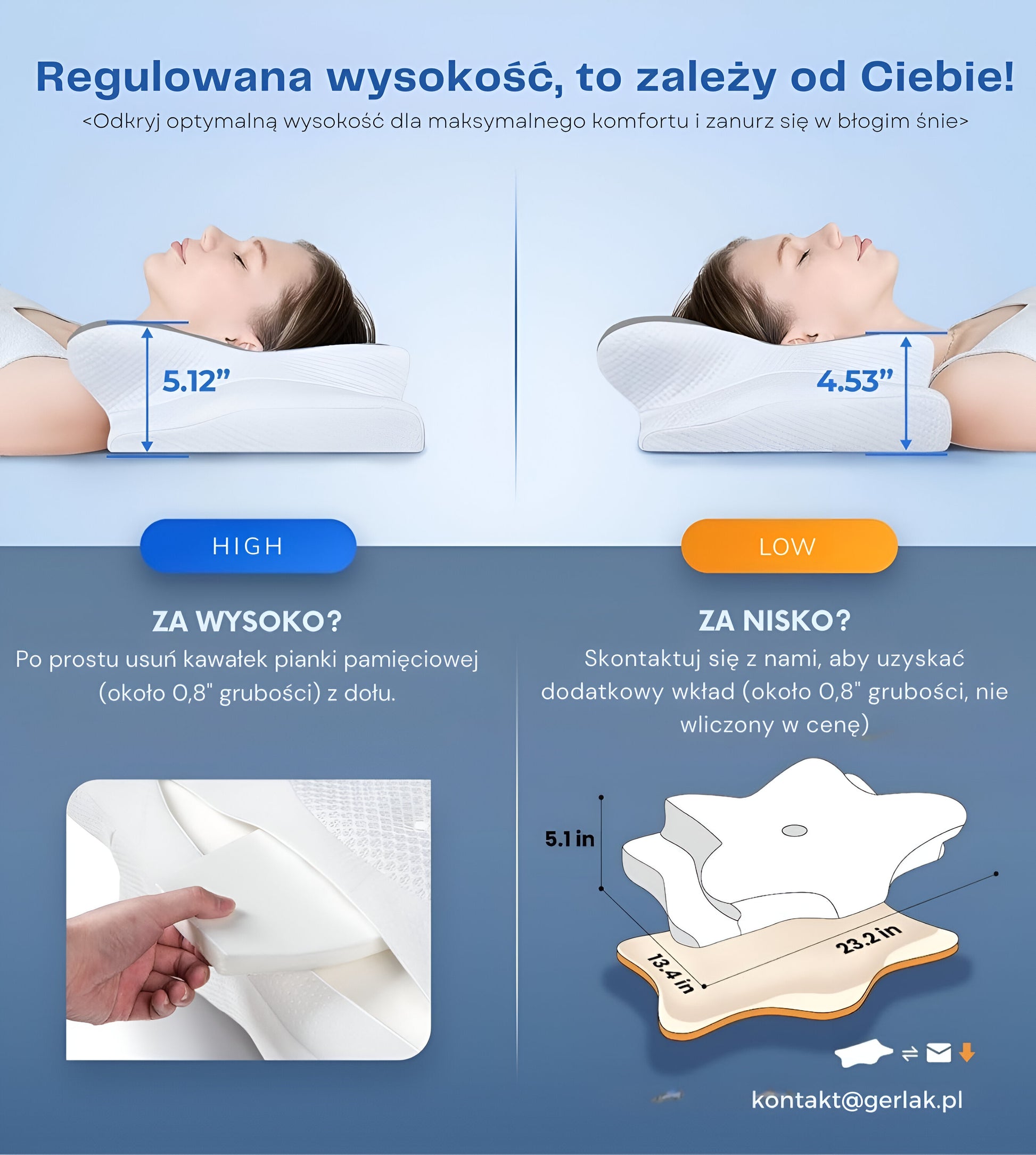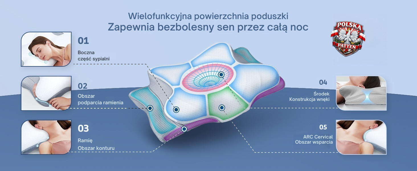 Masz dość rozpoczynania dnia od sztywności karku lub bólu ramion? Poduszka Reliefix™ to rozwiązanie zapewniające spokojny sen i orzeźwiający poranek. Dzięki unikalnemu , wklęsłemu kształtowi o kącie 15° , poduszka delikatnie otula głowę, zachowując jednocześnie naturalne wygięcie szyi. Zaprojektowano ją tak, aby prawidłowo ułożyć kręgosłup, łagodząc ból i zapewniając, że obudzisz się zrelaksowany i bezbolesny.