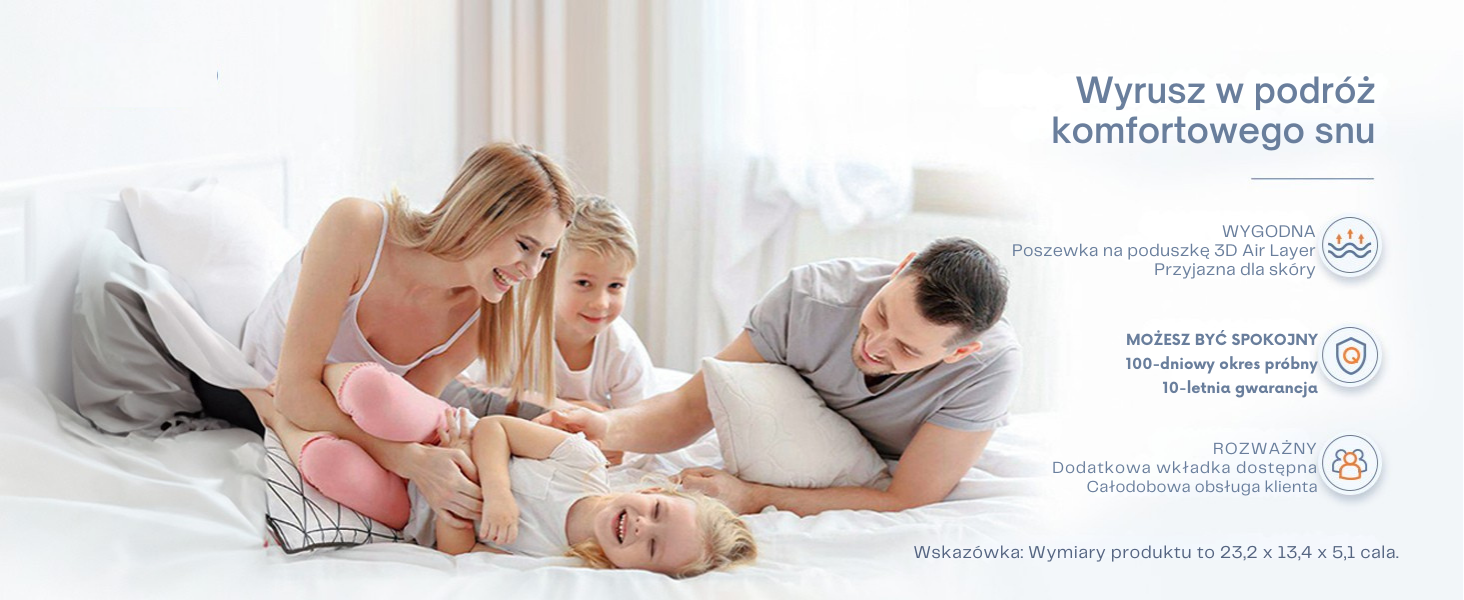 Twój sen powinien być tak wyjątkowy, jak Ty. Poduszka Reliefix™ pozwala w pełni dostosować komfort do Twoich potrzeb. Niezależnie od tego, czy potrzebujesz większej wysokości, czy wolisz bardziej miękką w dotyku poduszkę, możesz ją łatwo dopasować, obracając lub wyjmując dolną wkładkę. Została zaprojektowana tak, aby dopasować się do Twoich potrzeb, zapewniając Ci dopasowane wsparcie, które pomaga złagodzić ból szyi i ramion, zapewniając Ci spokojny sen, który prawdziwie regeneruje Twoje ciało.