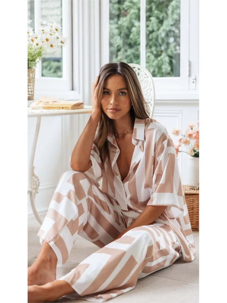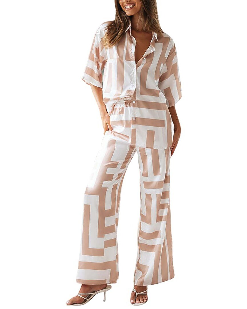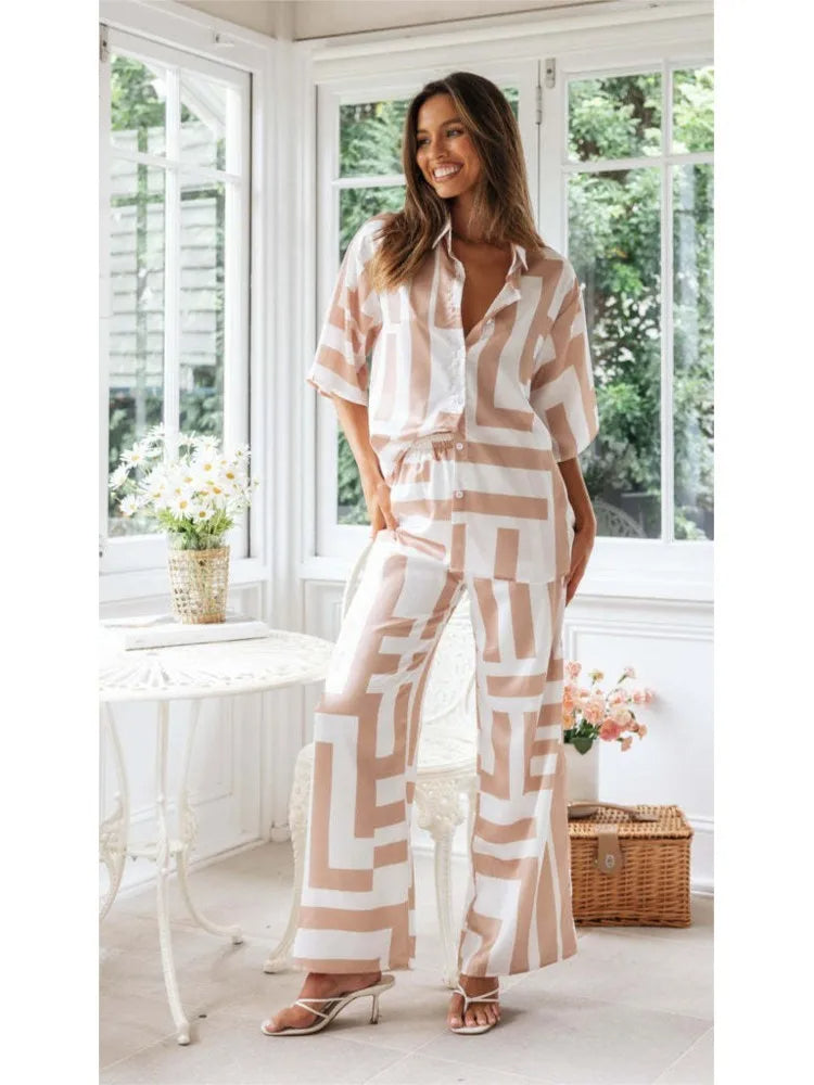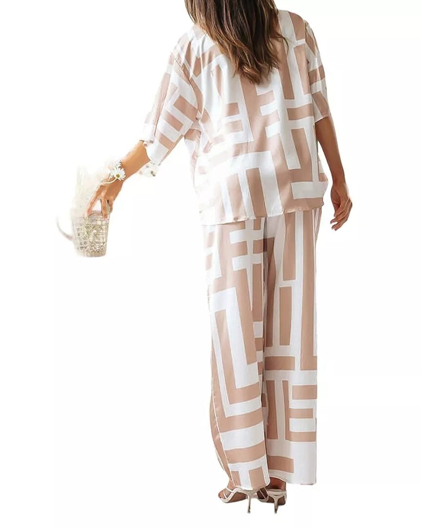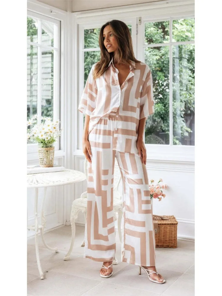 Ten uniwersalny strój składa się z szykownej, luźnej góry oraz długich, szerokich spodni, dzięki czemu idealnie nadaje się zarówno do biura, jak i na nieformalne wyjścia.