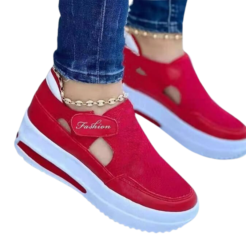 Podnieś swój styl dzięki czerwonym damskim tenisówkom. Te płócienne tenisówki łączą swobodną elegancję ze sportową funkcjonalnością. Idealne do codziennego użytku, mają wygodną platformę i wyjątkowo wydrążony design.