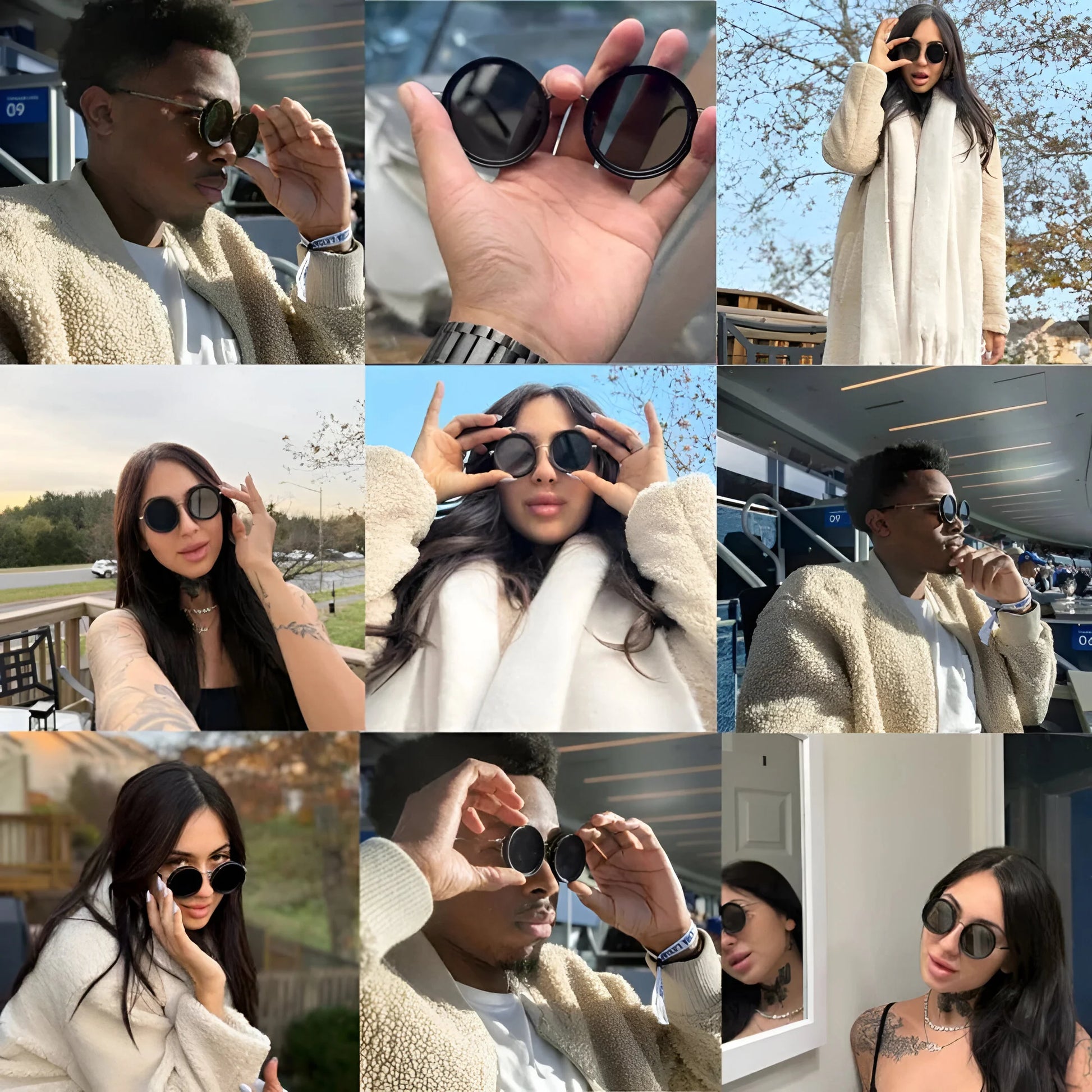 Te okulary przeciwsłoneczne w drucianej oprawie mają spolaryzowane soczewki z ochroną UV400 i regulowane filtry ND, które obracają się, aby zmienić poziom jasności. Dzięki 9 ustawieniom z pewnością przyciągną wzrok, gdy ludzie je zobaczą.
