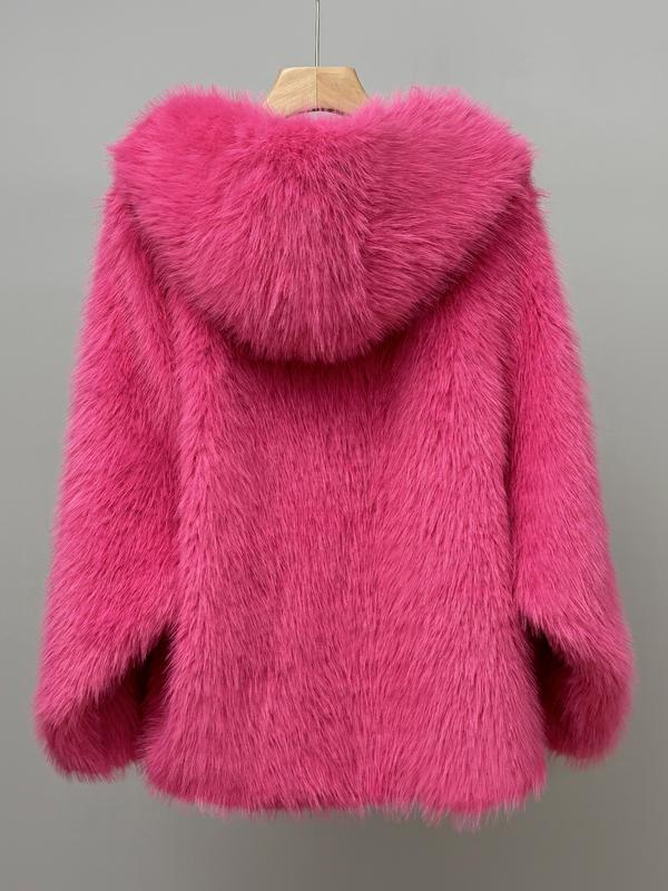 Umme - Jednokolorowy płaszcz z kapturem ze sztucznego futra