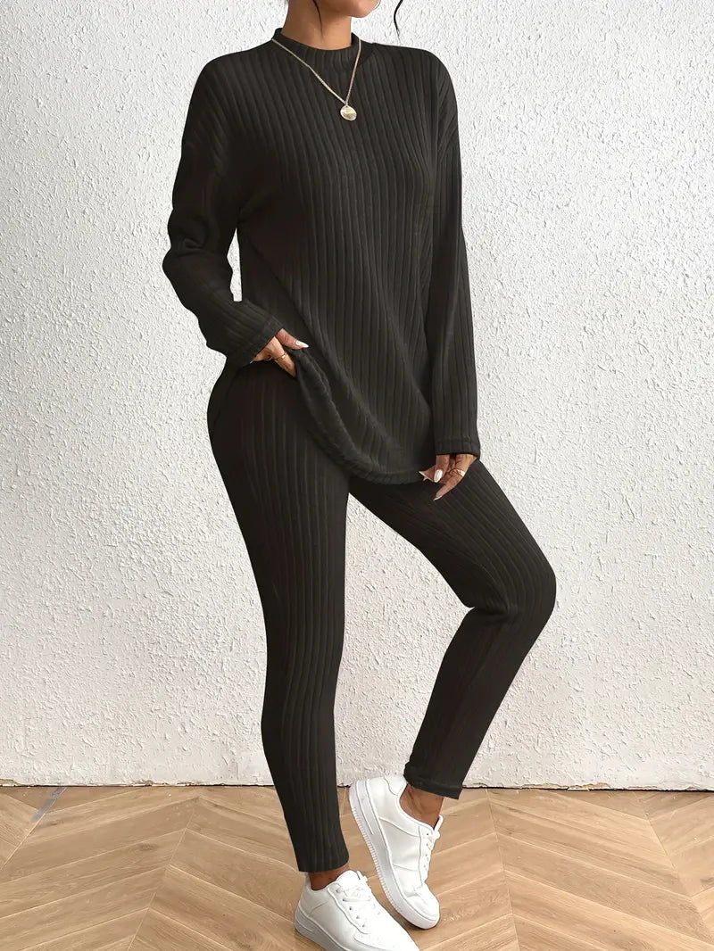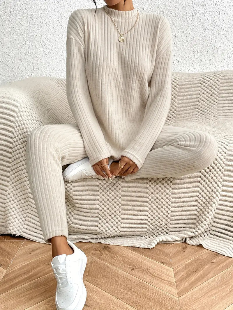 Szukasz eleganckiego, ale wygodnego stroju? Ten zestaw Casual Solid Color Ribbed składa się ze stylowej bluzki z długim rękawem i golfem oraz dopasowanych spodni — idealny na każdą okazję. Kup teraz!