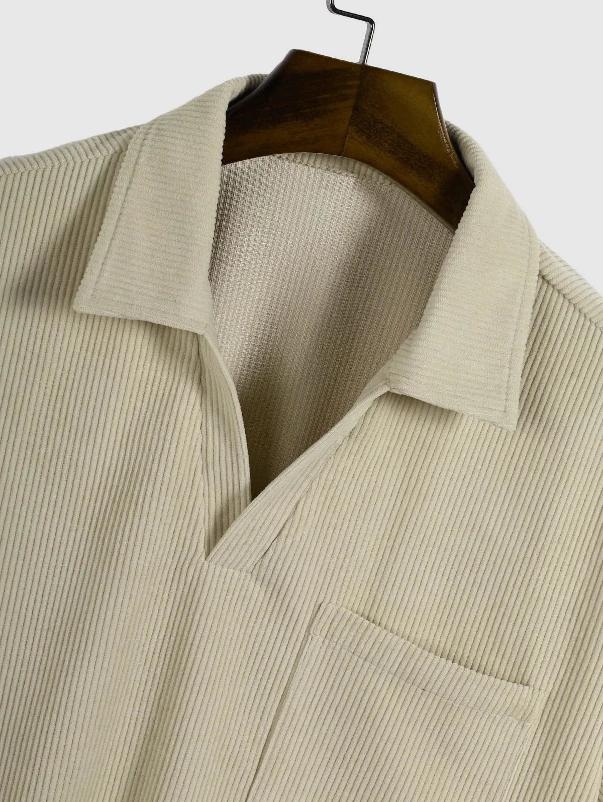 Ta męska koszulka polo z półguzika z kordu łączy ponadczasowy design z najwyższym komfortem. Wykonana z miękkiego kordu, oferuje idealną równowagę ciepła i mobilności — idealna do noszenia warstwowego lub solo. Niezależnie od tego, czy zestawiana z dżinsami na co dzień, czy też ubrana na bardziej wyrafinowany wygląd, jest to wszechstronny element każdej garderoby.