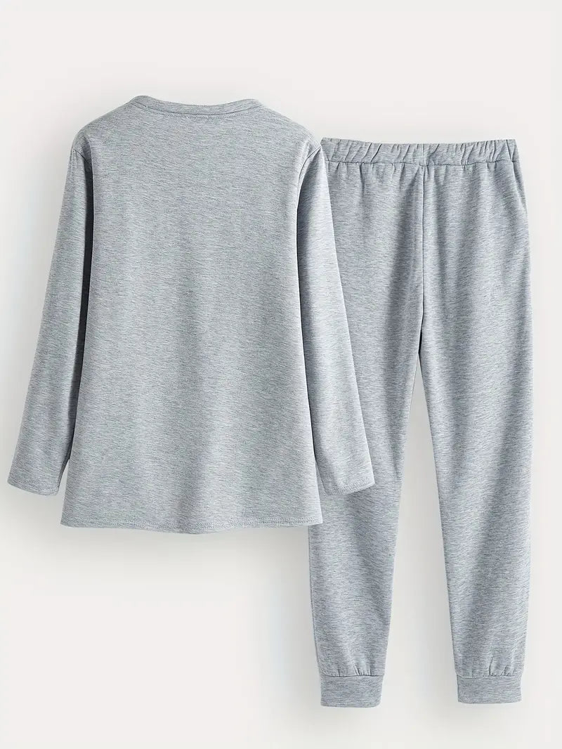 Zachowaj ciepło i styl dzięki temu monochromatycznemu zestawowi termicznemu. Składa się z bluzki z długim rękawem i okrągłym dekoltem oraz regulowanych spodni ze ściągaczem, zaprojektowanych z myślą o najwyższym komforcie. Idealny do noszenia na co dzień lub relaksu w domu.